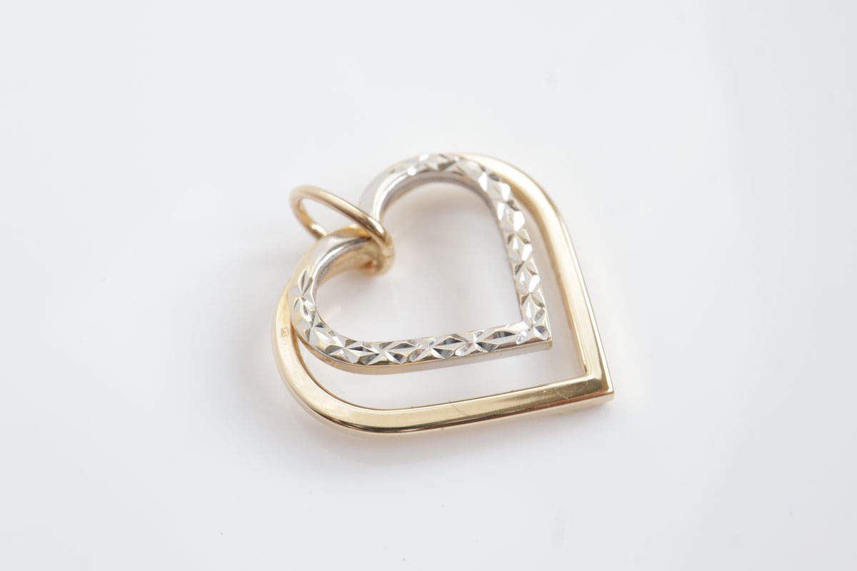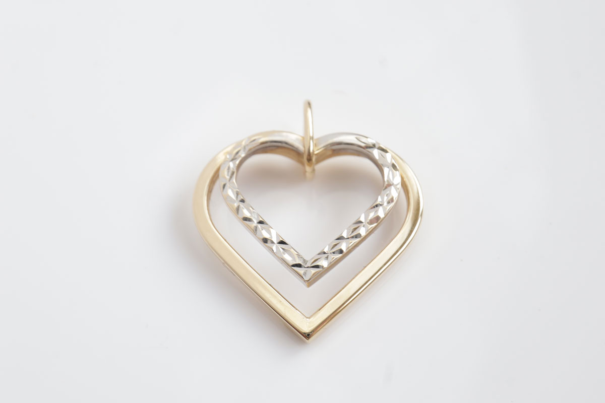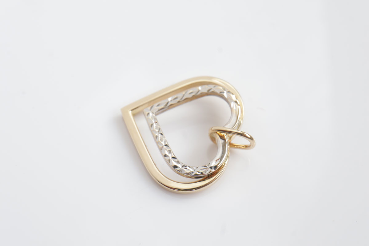 - 14 Karaat Bicolor Dubbel Hart Hanger
