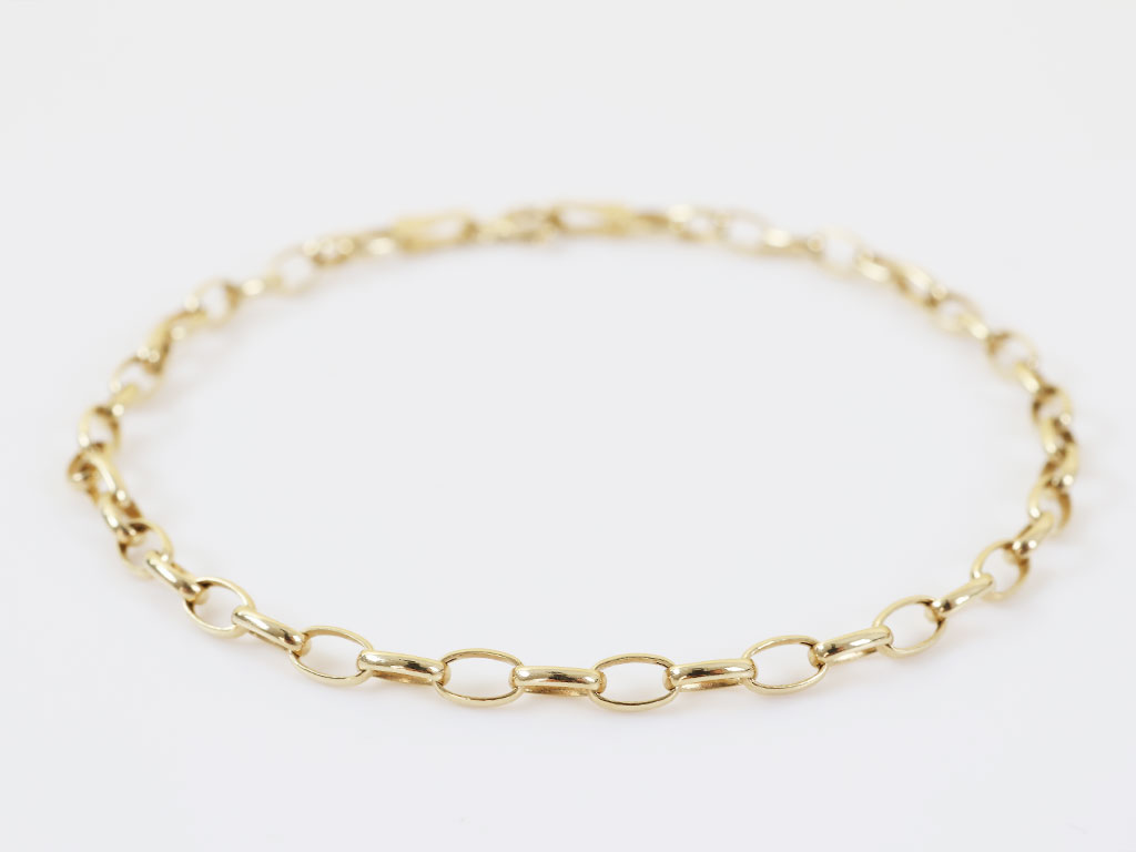 Figaro!! een geweldige schakel voor heren en dames, omdat deze overal mee te combineren is. Deze subtiele dames armband is gemaakt van 14 karaat geelgoud.