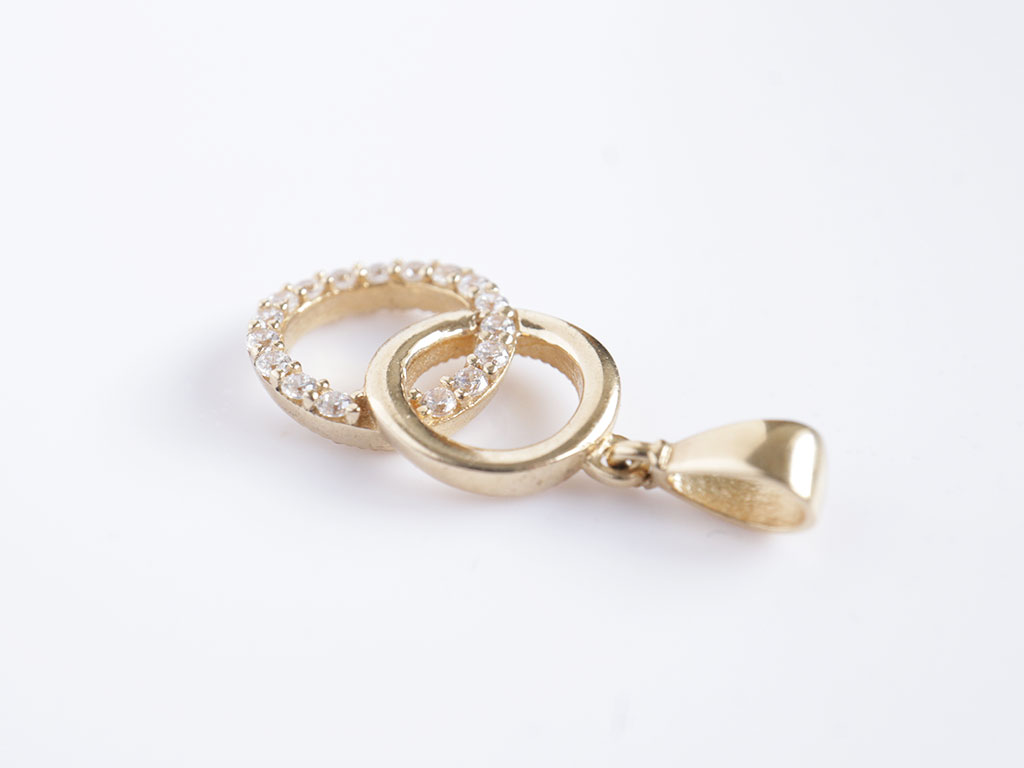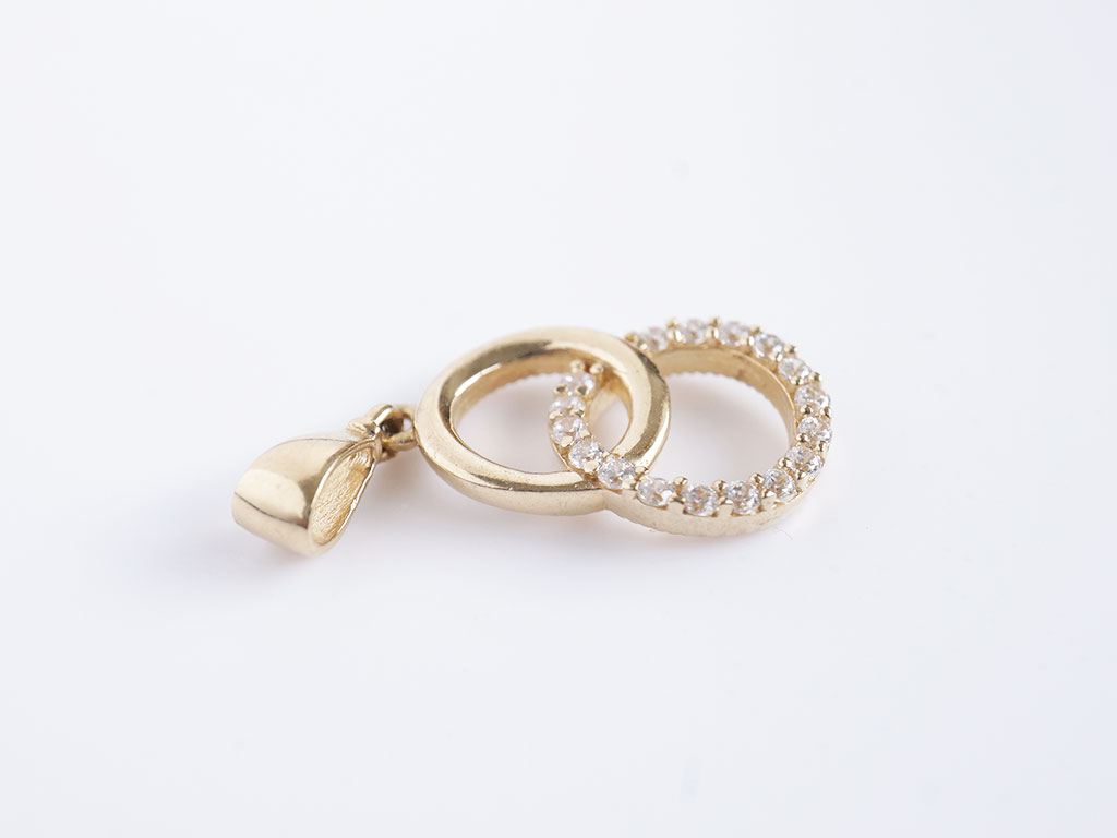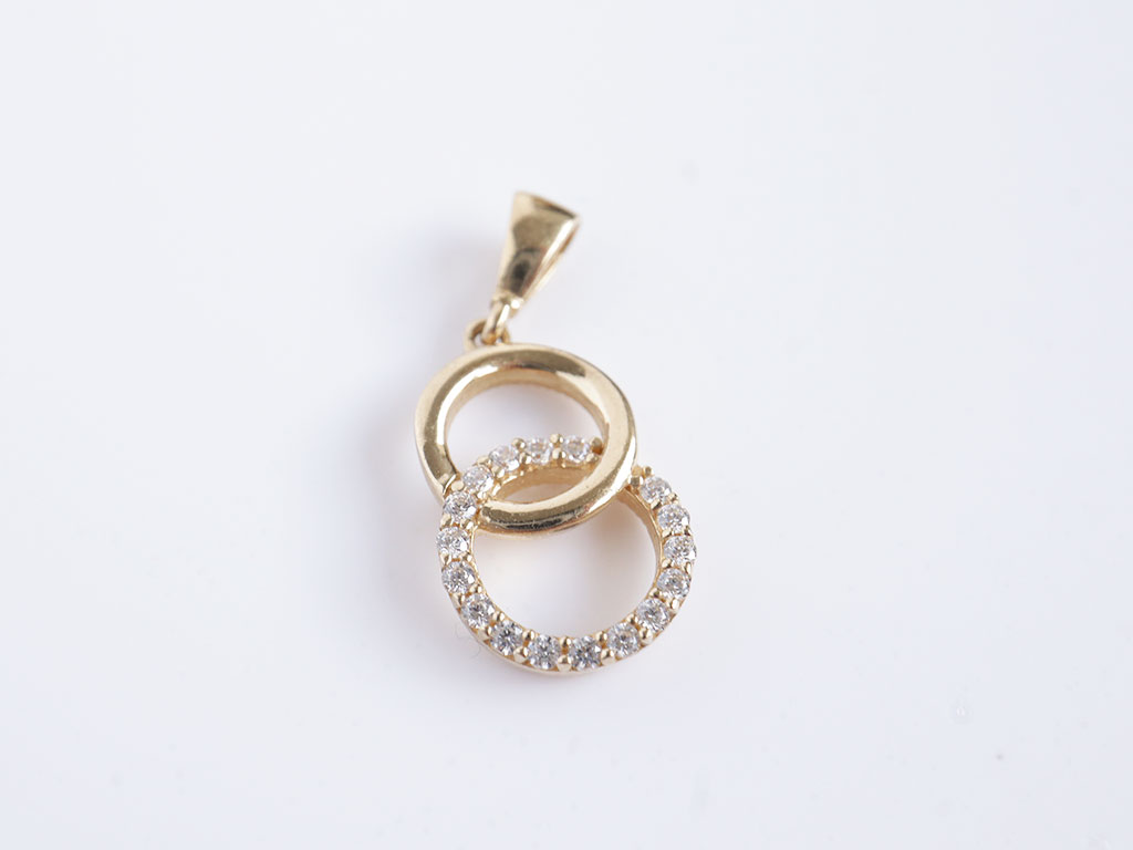 Z333-3350Deze 14 karaat gouden hanger bestaat uit twee cirkels. De bovenste cirkel is glad en rustig gehouden, terwijl de onderste cirkel is bezet met zirkonia’s. Daardoor ontstaat een mooi contrast tussen warm goud en heldere schittering.