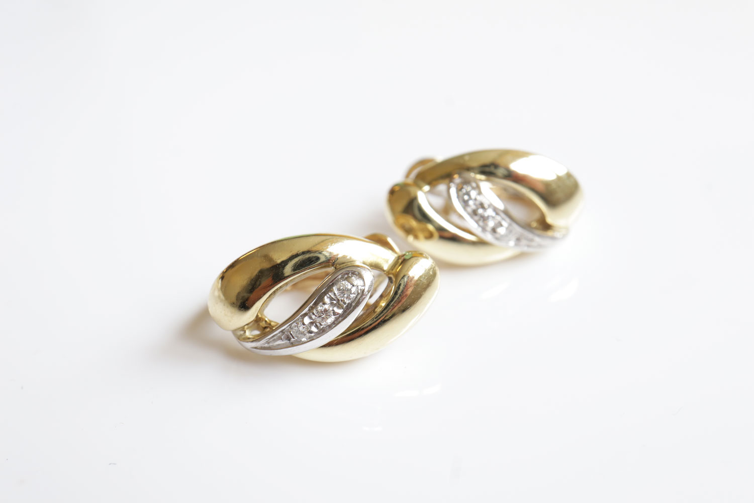 14 Karaat Gouden Clip Oorbellen Met Diamanten