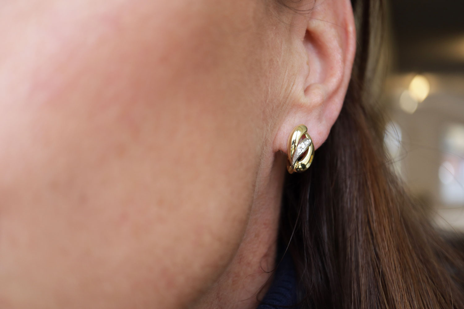 - 14 Karaat Gouden Clip Oorbellen Met Diamanten