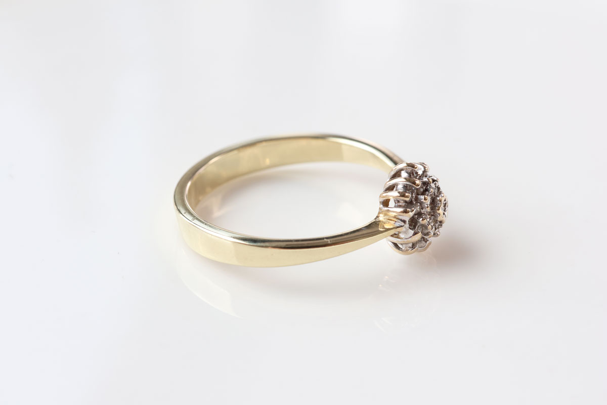 14 Karaat Gouden Cluster Ring Met 25 Diamanten
