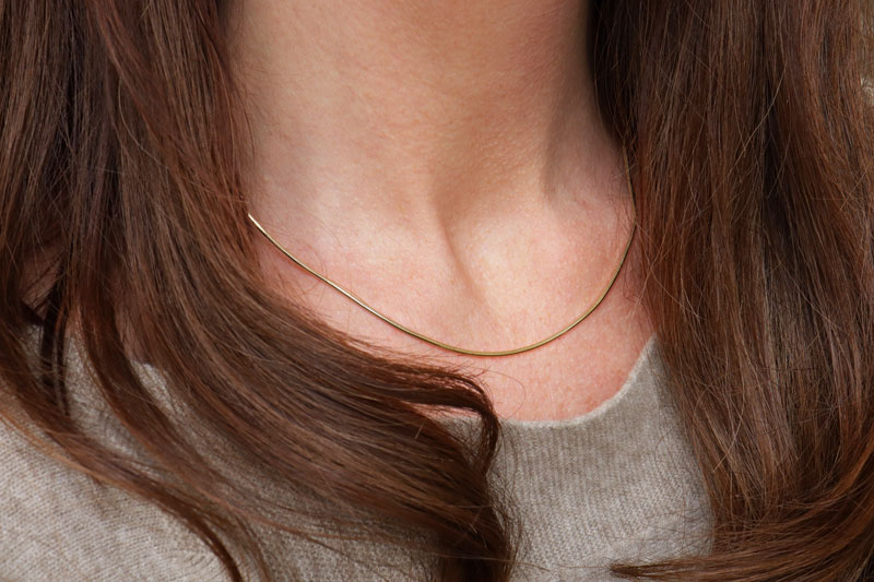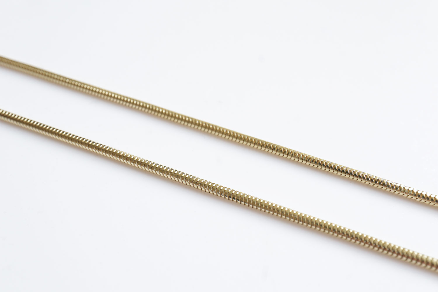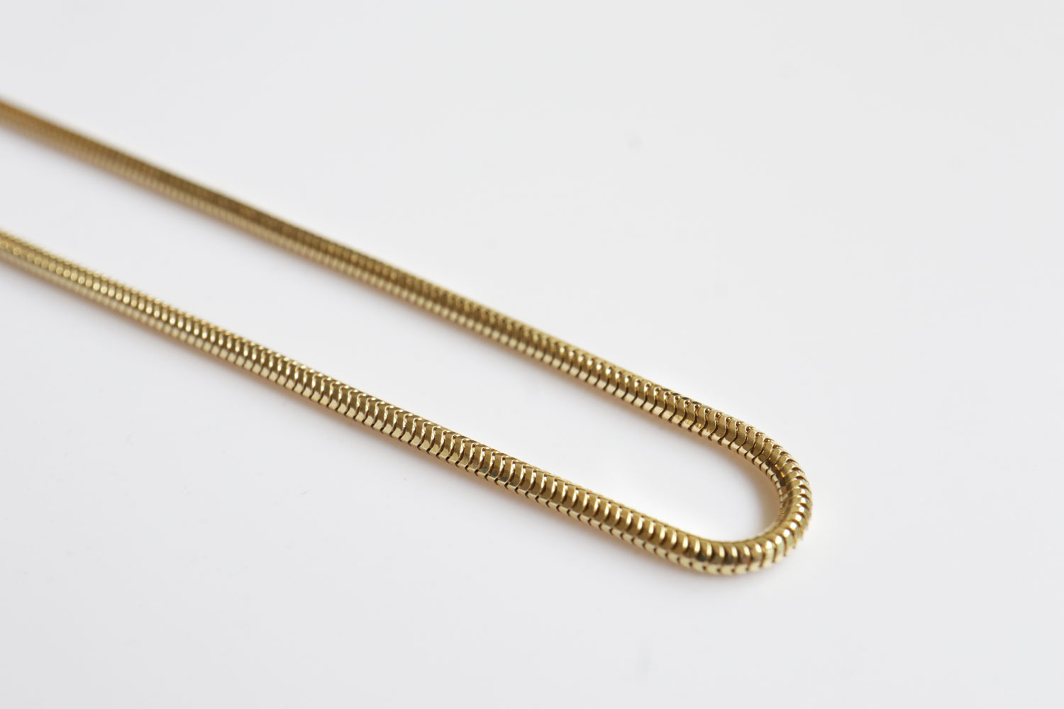 Z314-3156Een minimalistisch ontwerp, daardoor is deze ketting tijdloos en elegant. Een ketting met slangenschakel is zo populair omdat hij mooi vol oogt en heerlijk draagt. Hij valt soepel om de hals en de schakels zijn rond. Hij is gemaakt van 14 karaat goud en heeft een perfecte lengte van 45 cm. Hij valt daarmee net over het sleutelbeen en is dus heel goed te combineren met ieder outfit.