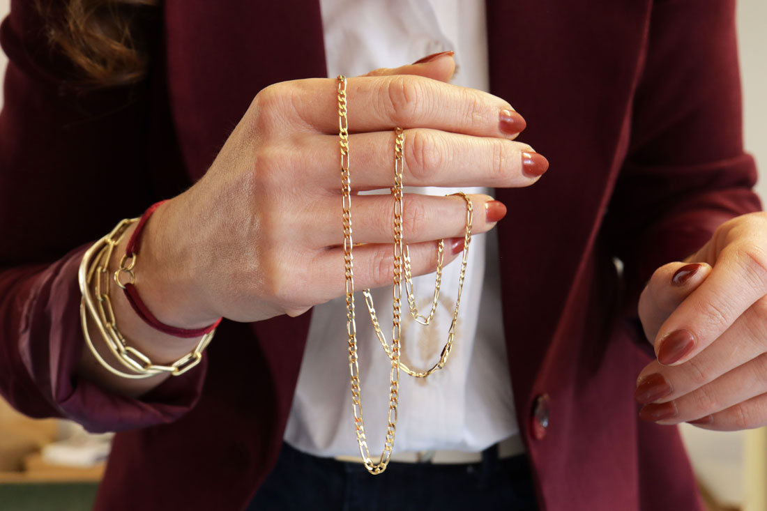 Z314-3158De Figaro schakel is een echte klassieker! We blijven hem terug zien en dat is niet zonder reden. De Figaro is een schakel die een vast patroon heeft en dat geeft balans en rust. Maar dan wel eentje met een moderne uitstraling.