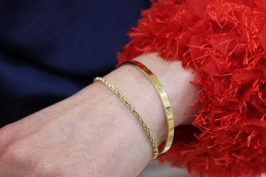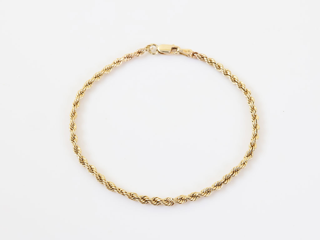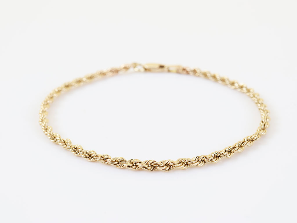 Een altijd elegante dames armband: de koordschakel. Deze is gemaakt van 14 karaat goud.