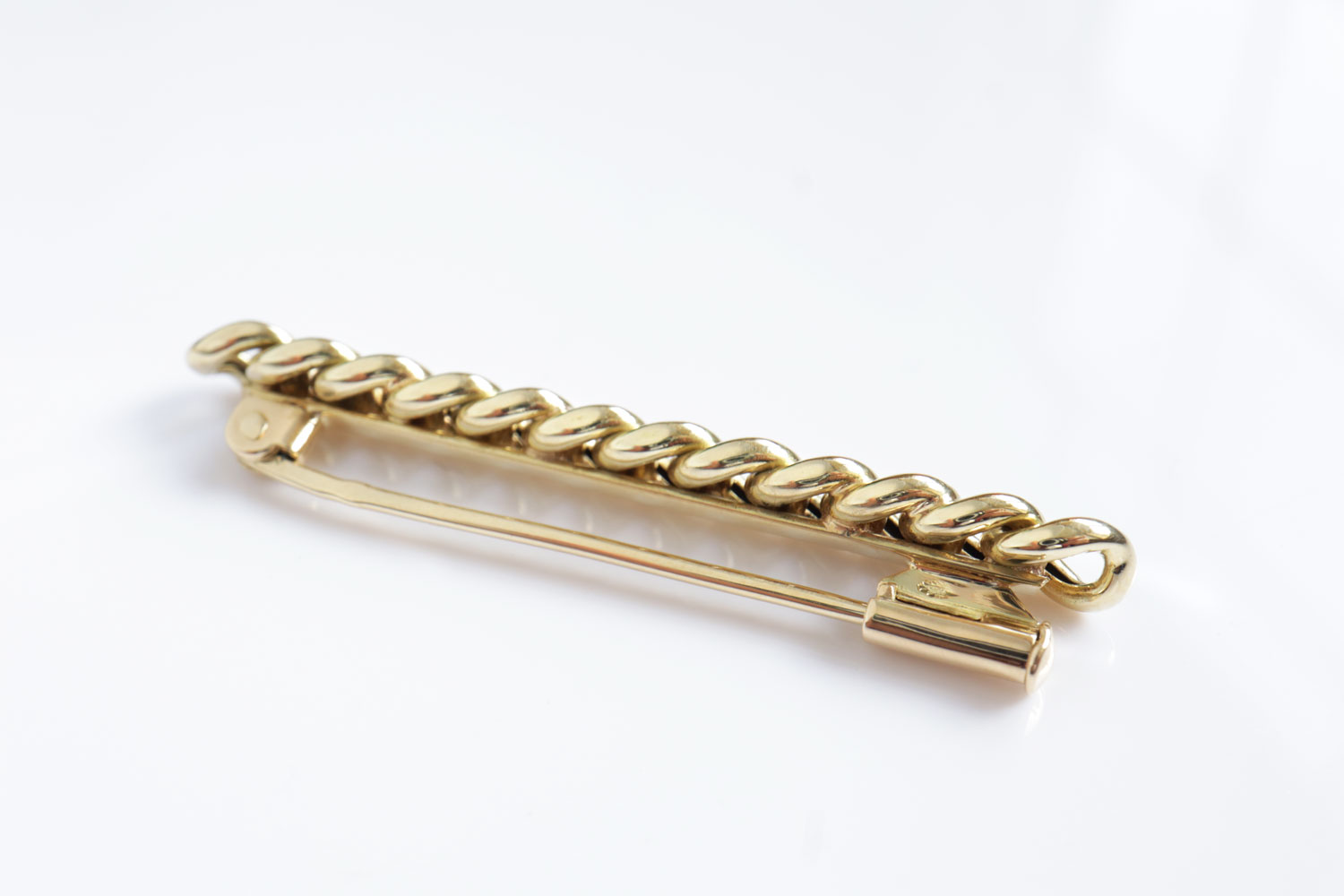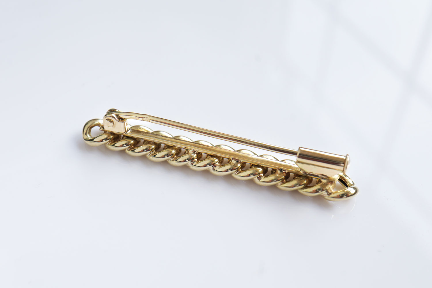 Z307-3088Deze gouden broche is perfect voor de moderne vrouw die blij is dat de broche zijn comeback heeft gemaakt. Hij heeft namelijk de klassieke en altijd populaire gourmetschakel. Hij is gemaakt van 14 karaat goud en daarmee is het een blijvend stijlaccent voor jouw outfits.