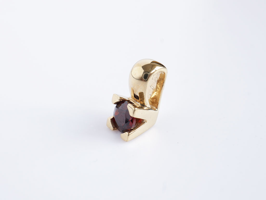 Deze 14 karaat gouden hanger met granaat is een prachtige blikvanger door de dieprode kleur van de steen.