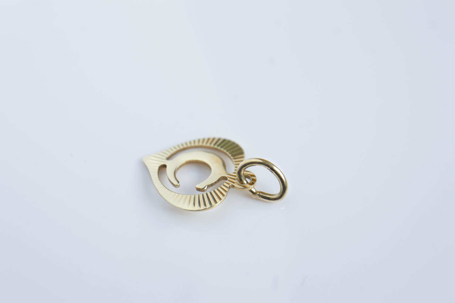 Deze gouden hanger met fantasiedesign is gemaakt van 14 karaat wit- en geelgoud. Door de brede opening is deze kettinghanger passend op verschillende ketting diktes.