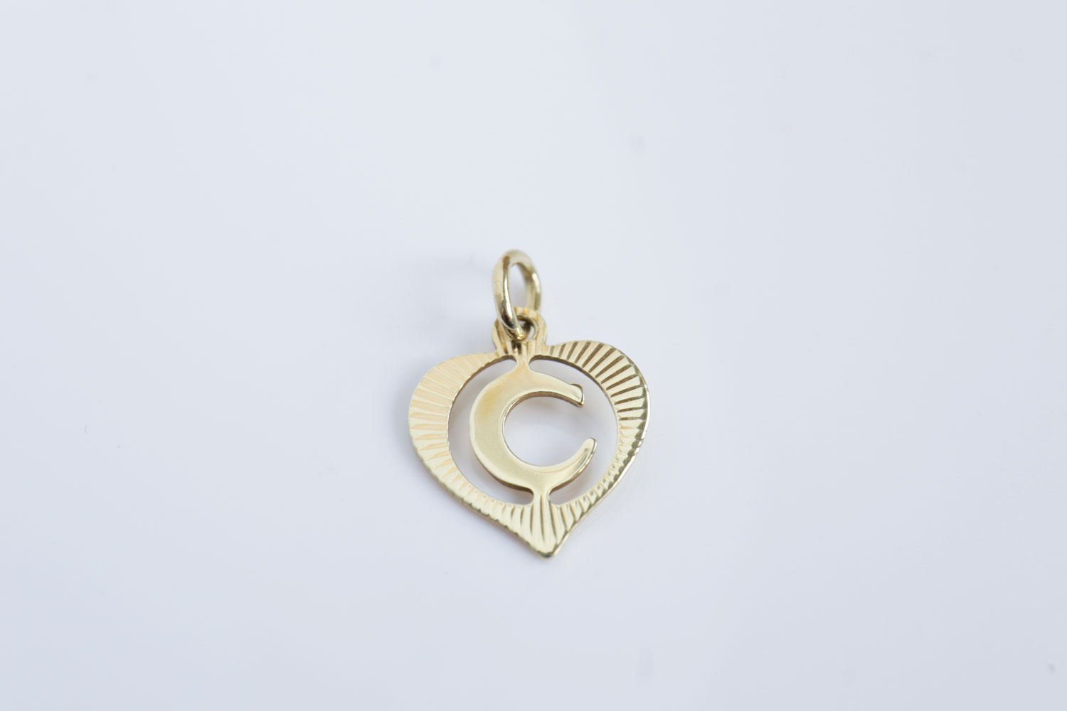 Z315-3181Deze gouden hanger met de letter C is gemaakt van 14 Karaat goud. Door de hartvorm is het een perfect sieraad om cadeau te geven. Het hart heeft in de rand een bewerking die mooi schittert wanneer het licht erop schijnt.