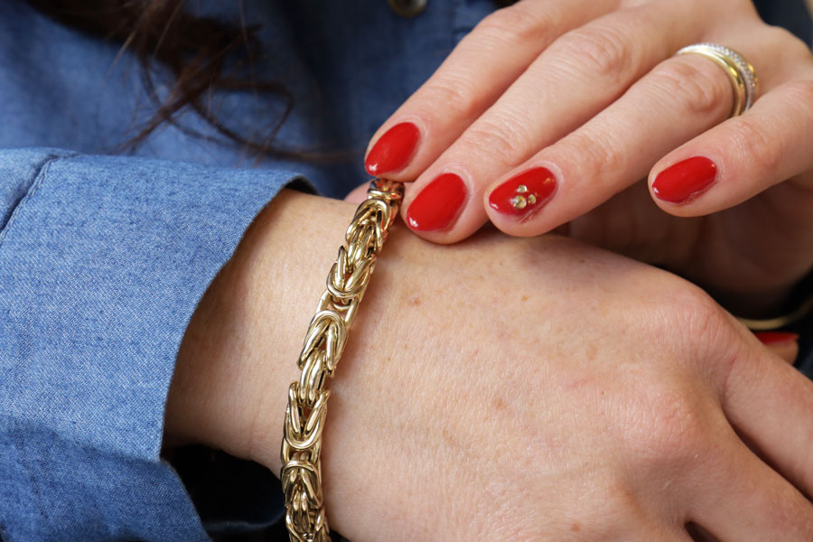 De koningsschakel staat bekend om zijn robuuste structuur en verfijnde afwerking. In combinatie met het warme geelgoud ontstaat een armband die zowel stoer als stijlvol is. De stevige karabijnhaaksluiting zorgt voor veiligheid en comfort bij dagelijks dragen.