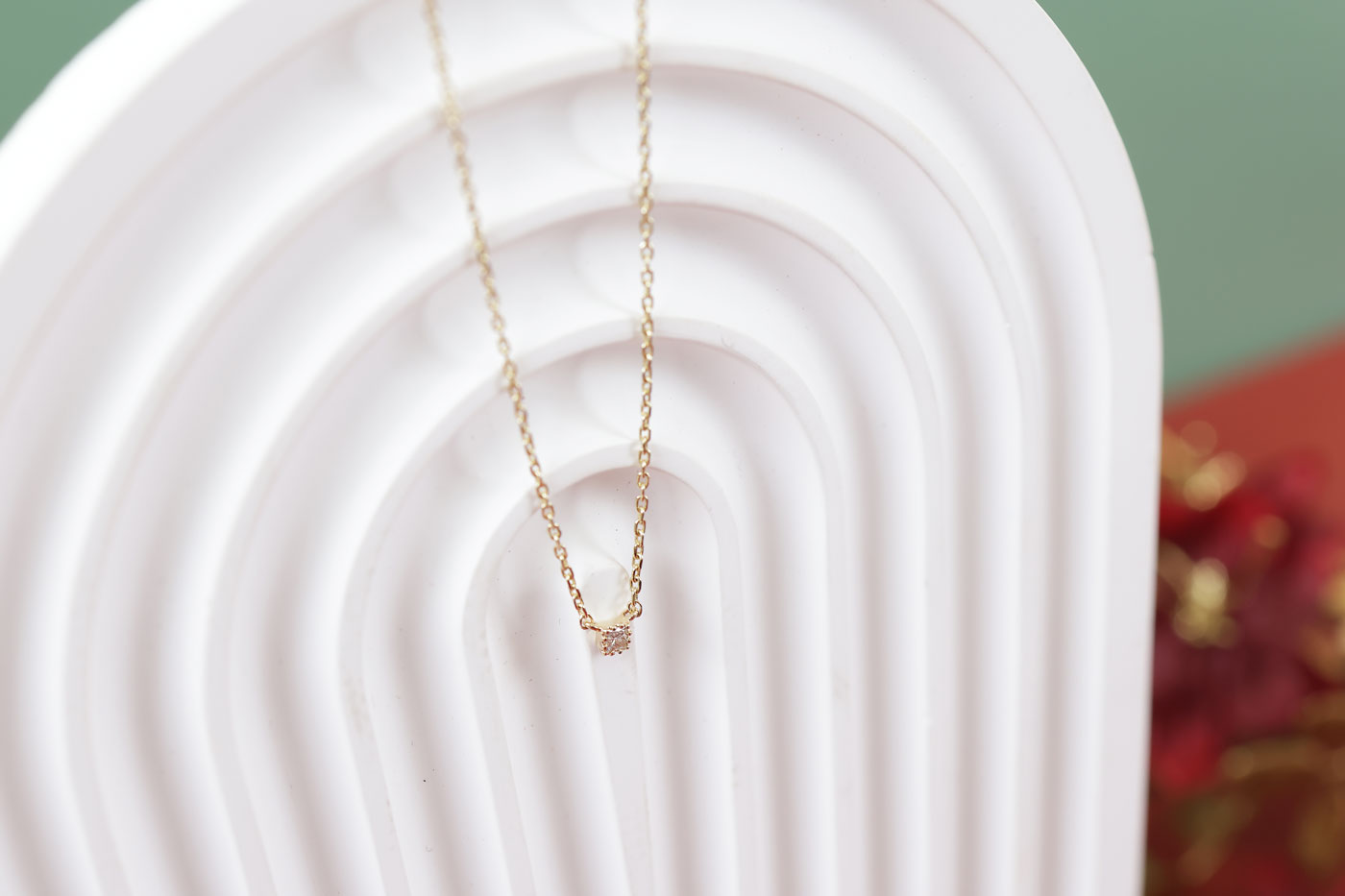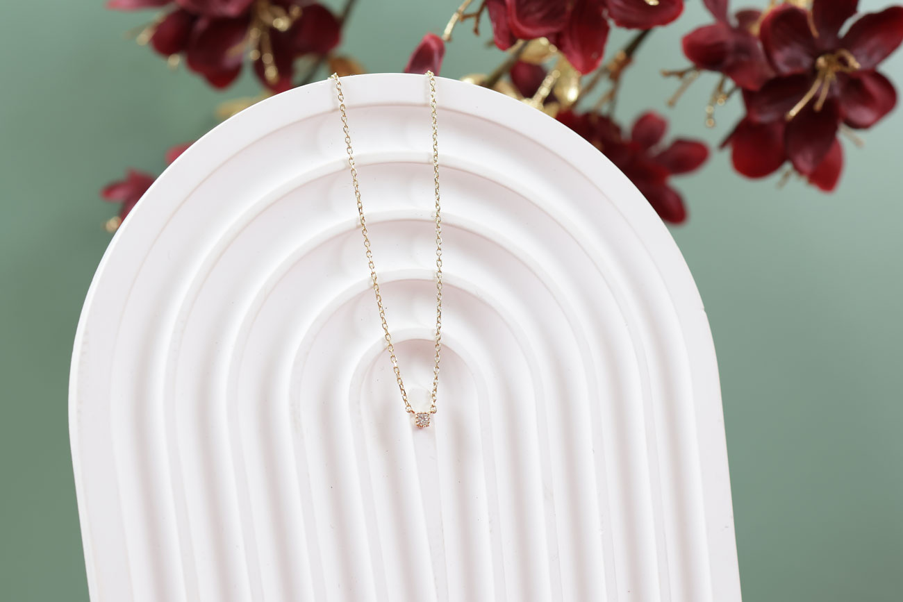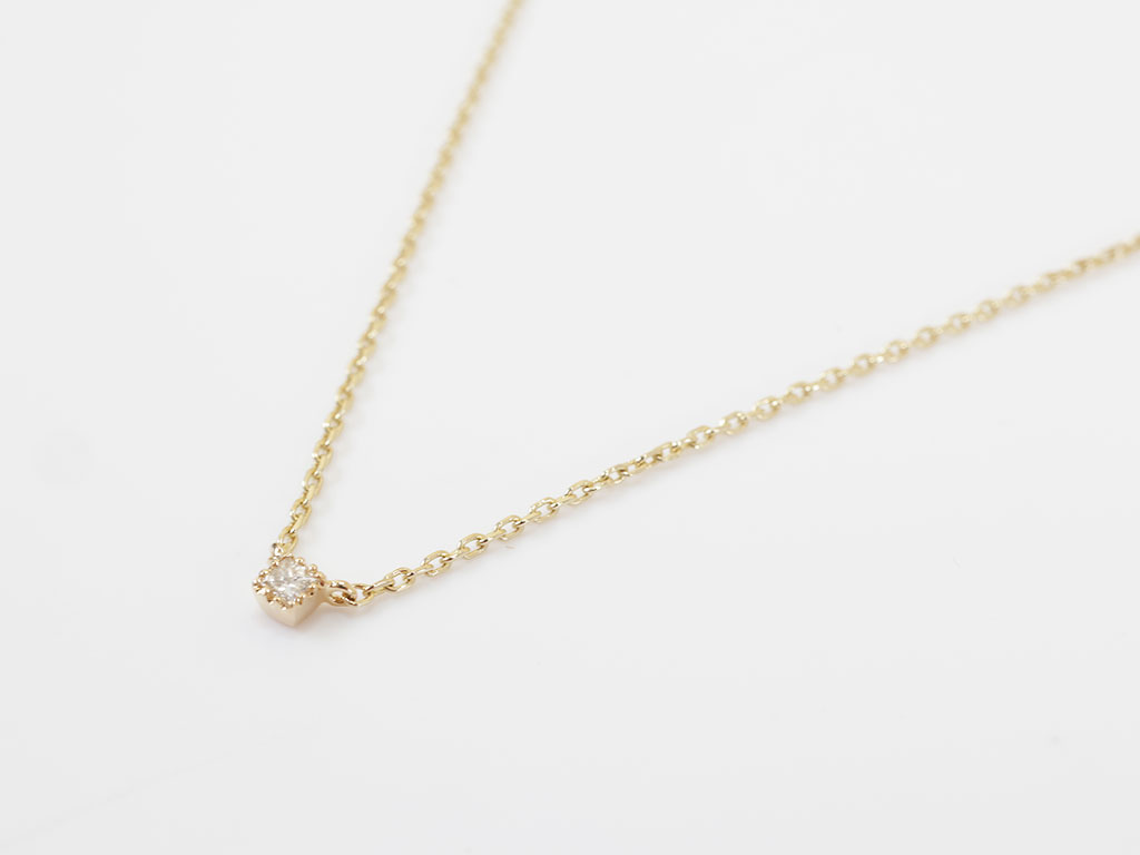 Fijne 14 karaat ketting met een minimalistisch vierkant hangertje. Deze is gezet met een briljant geslepen diamant. Subtiel, elegant en tijdloos.