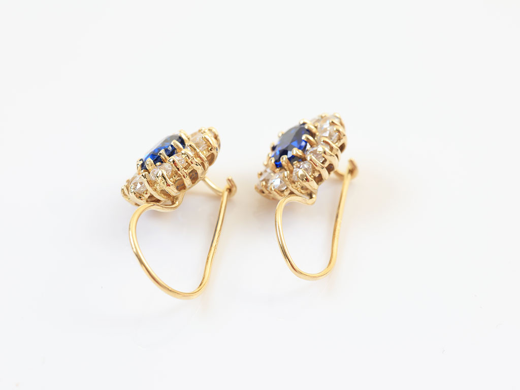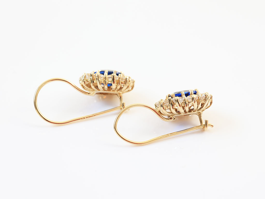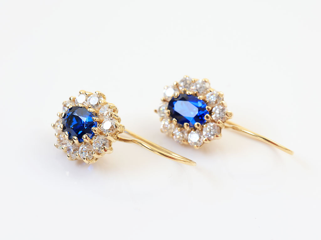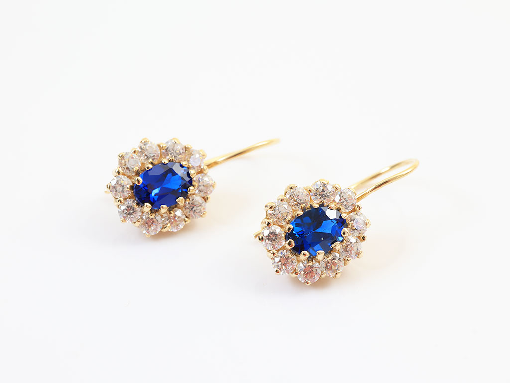 Deze 14 Karaat Gouden Lady Di Oorhangers zijn gezet met een synthetische saffier en zirkonia's.