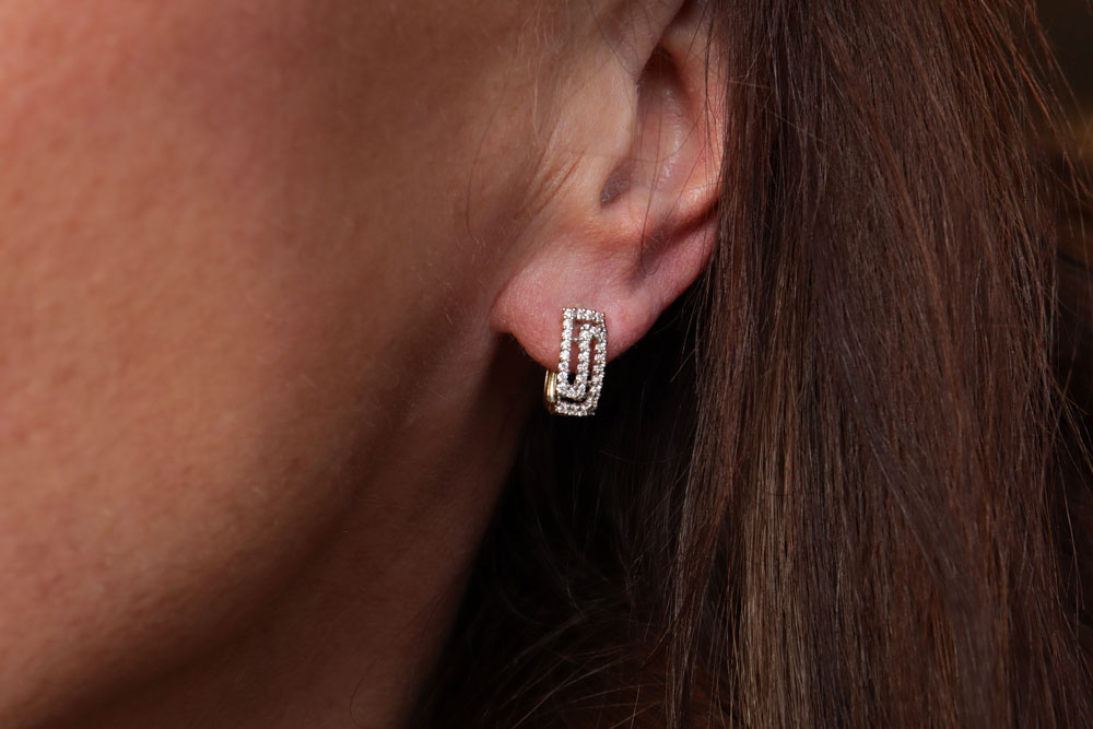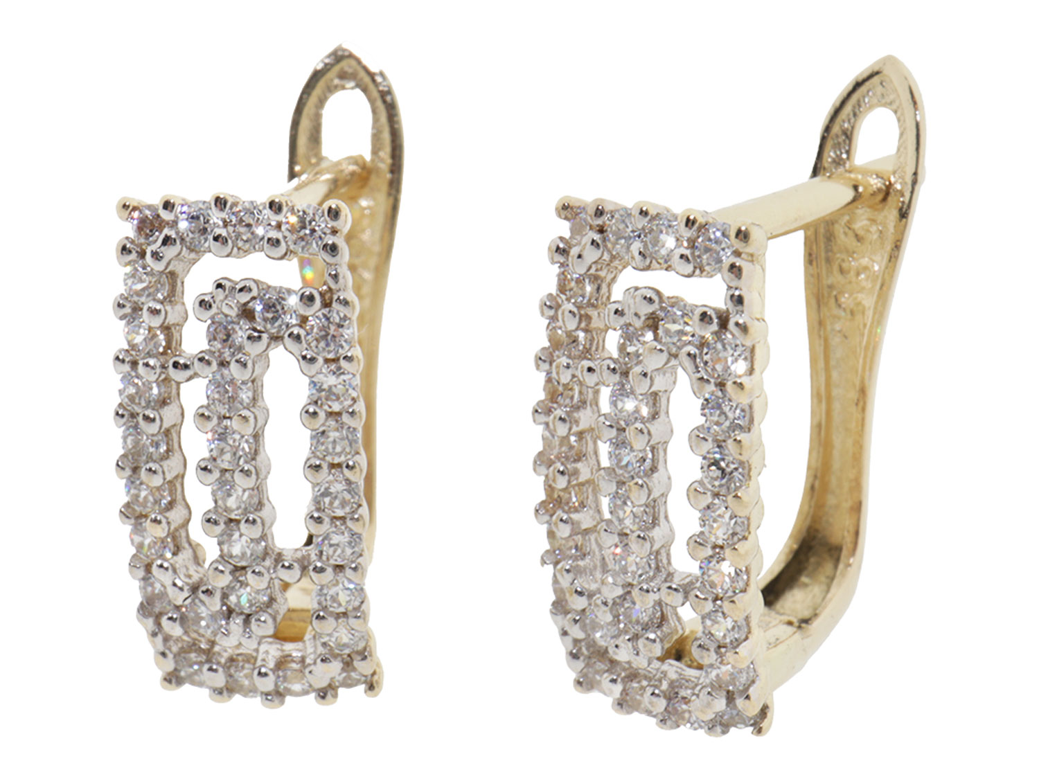 14 karaat gouden oorbellen met Meander patroon. Gezet met schitterende zirkonia's die zorgen voor een elegante en vrouwelijke uitstraling.