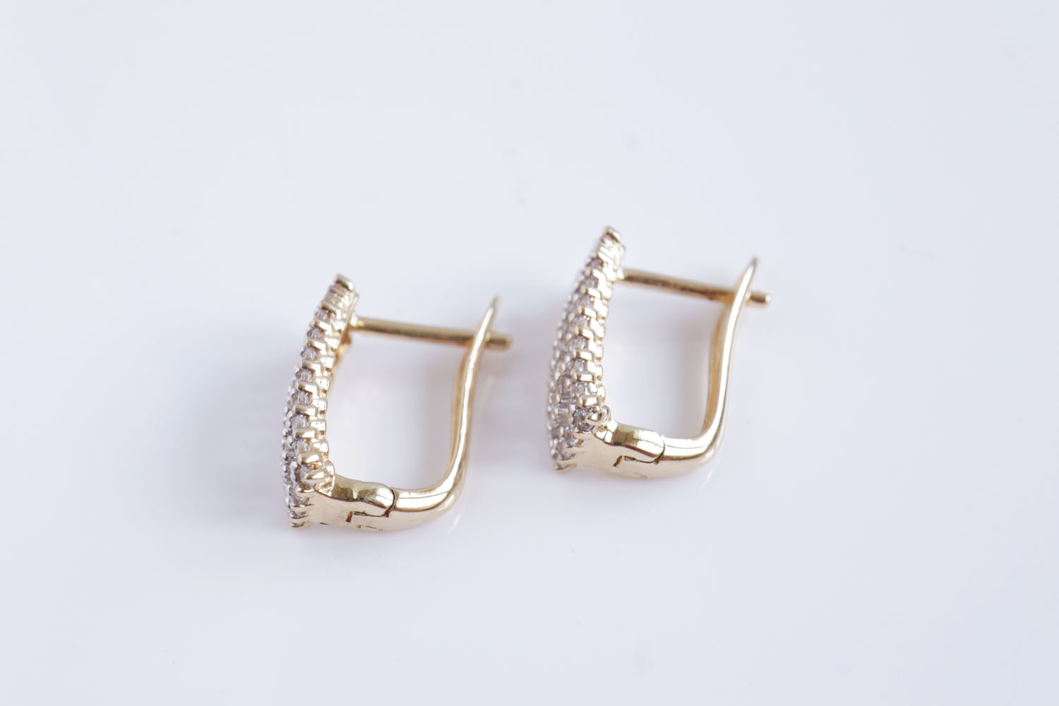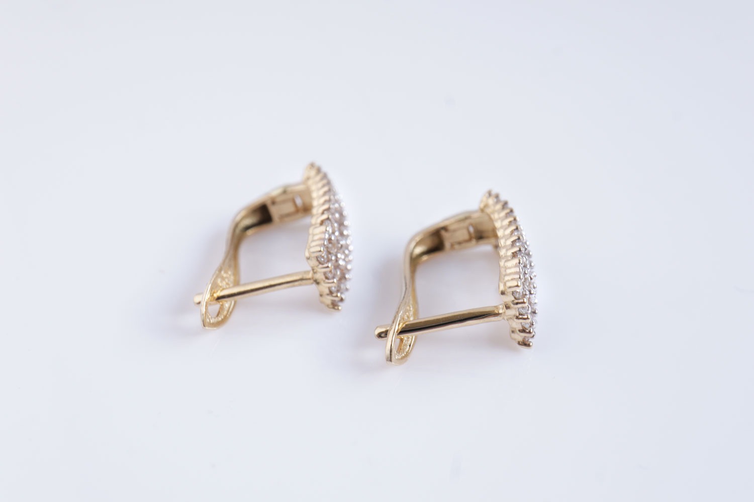 Deze gouden oorknopjes stralen aan het oor. Ze zijn gemaakt van 14 karaat geelgoud en gezet met schitterende diamanten. De diamanten zijn briljant geslepen en hebben samen een gewicht van 0.72 ct.