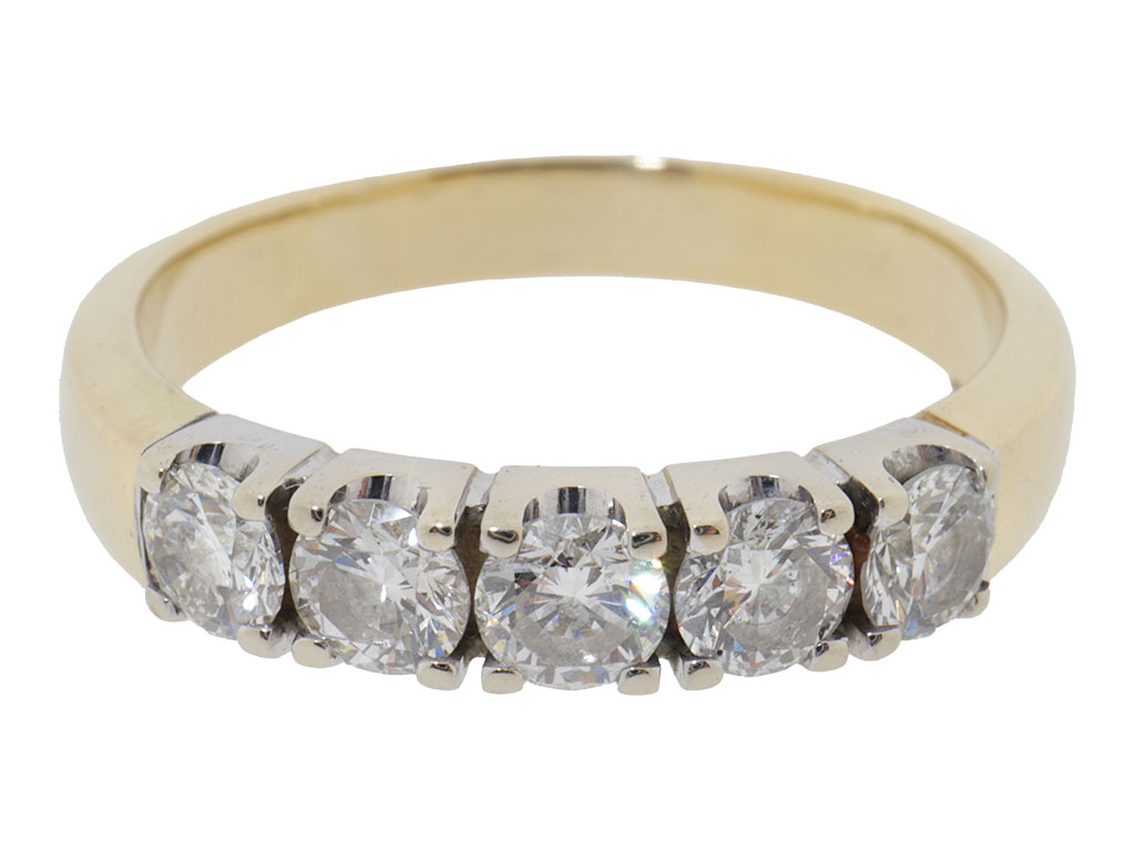 Iconische 14 karaat gouden rijring van Diamonde, gezet met vijf schitterende diamanten van elk 0.17 ct. Een tijdloze klassieker van pure elegantie.