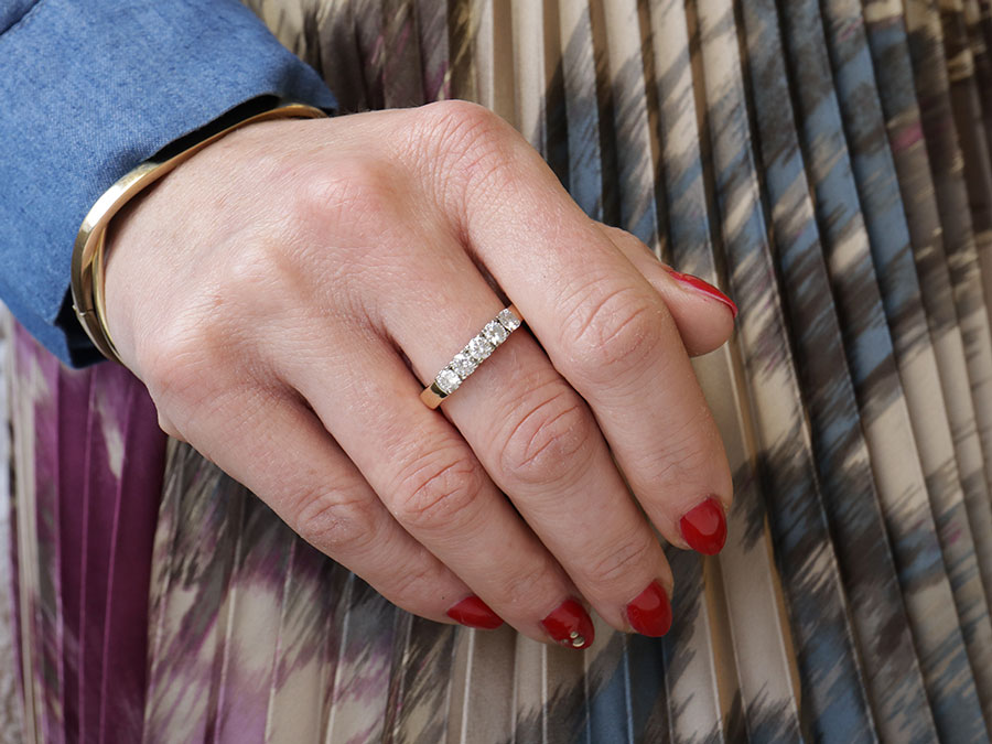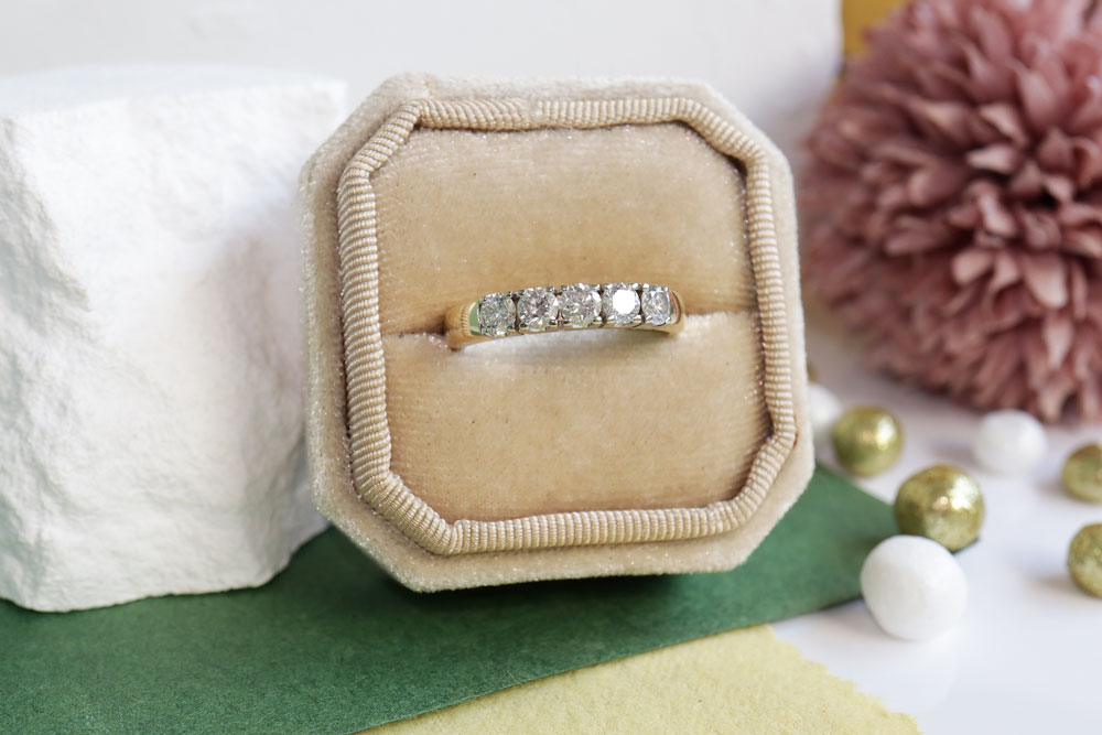 - 14 Karaat Gouden Rijring Diamonde – 5 Diamanten 0.17 ct | Tijdloze Klassieker
