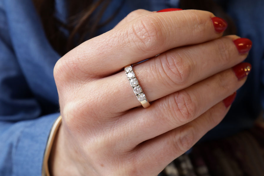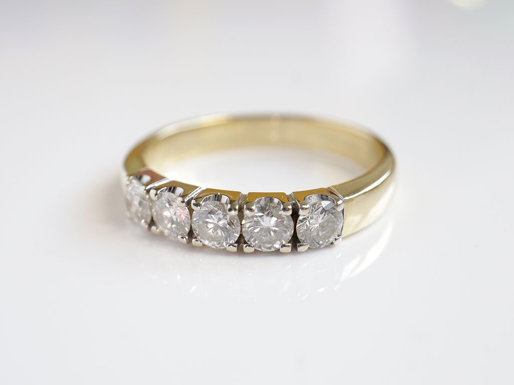 14 Karaat Gouden Rijring Diamonde – 5 Diamanten 0.17 ct | Tijdloze Klassieker