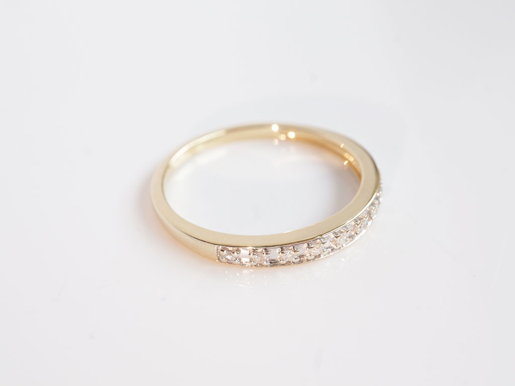 Z326-3271Deze 14 karaat gouden rijring met diamanten is een echte klassieker binnen de sieradenwereld. De ring is opgebouwd uit een verfijnde rij diamanten die samen zorgen voor een prachtige, gelijkmatige schittering. Door het strakke en evenwichtige ontwerp is deze ring tijdloos én veelzijdig.