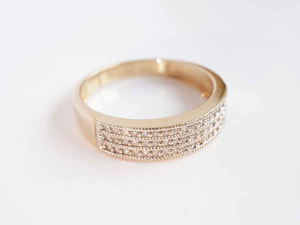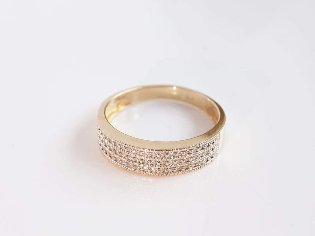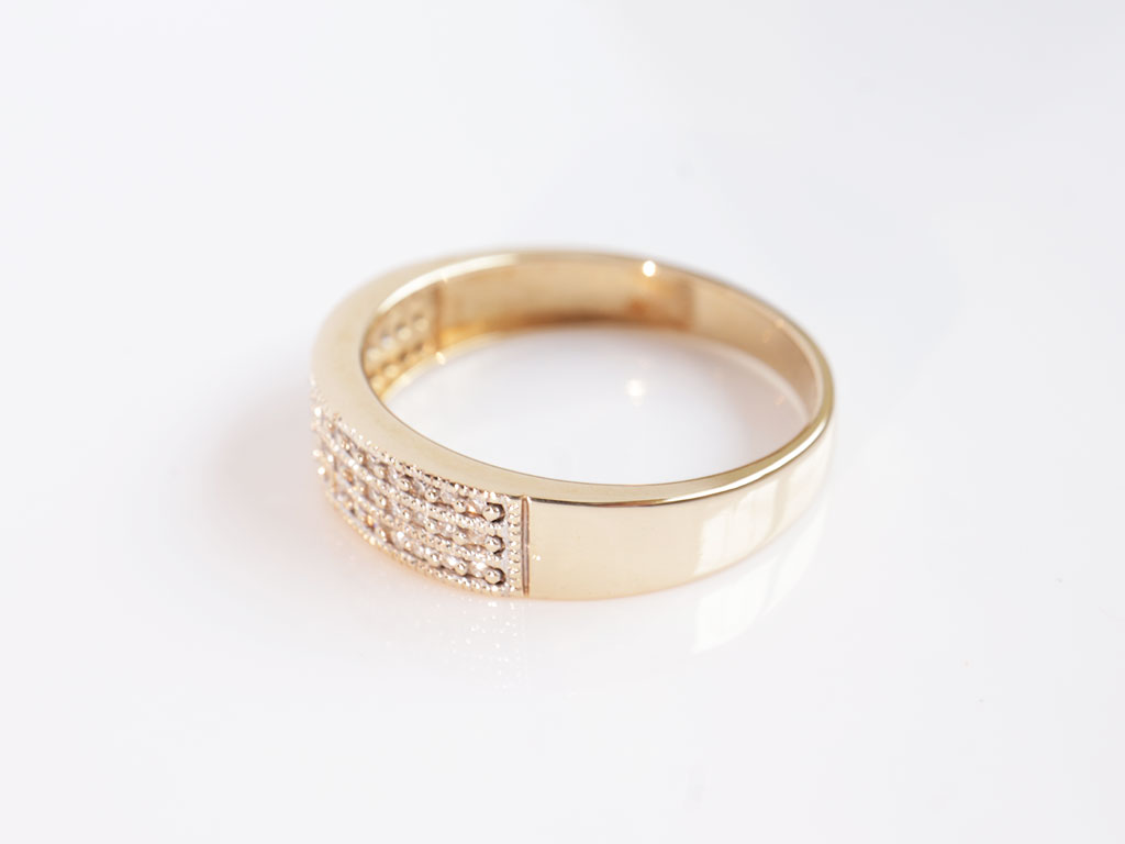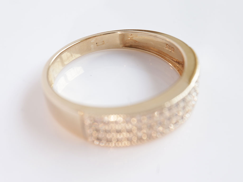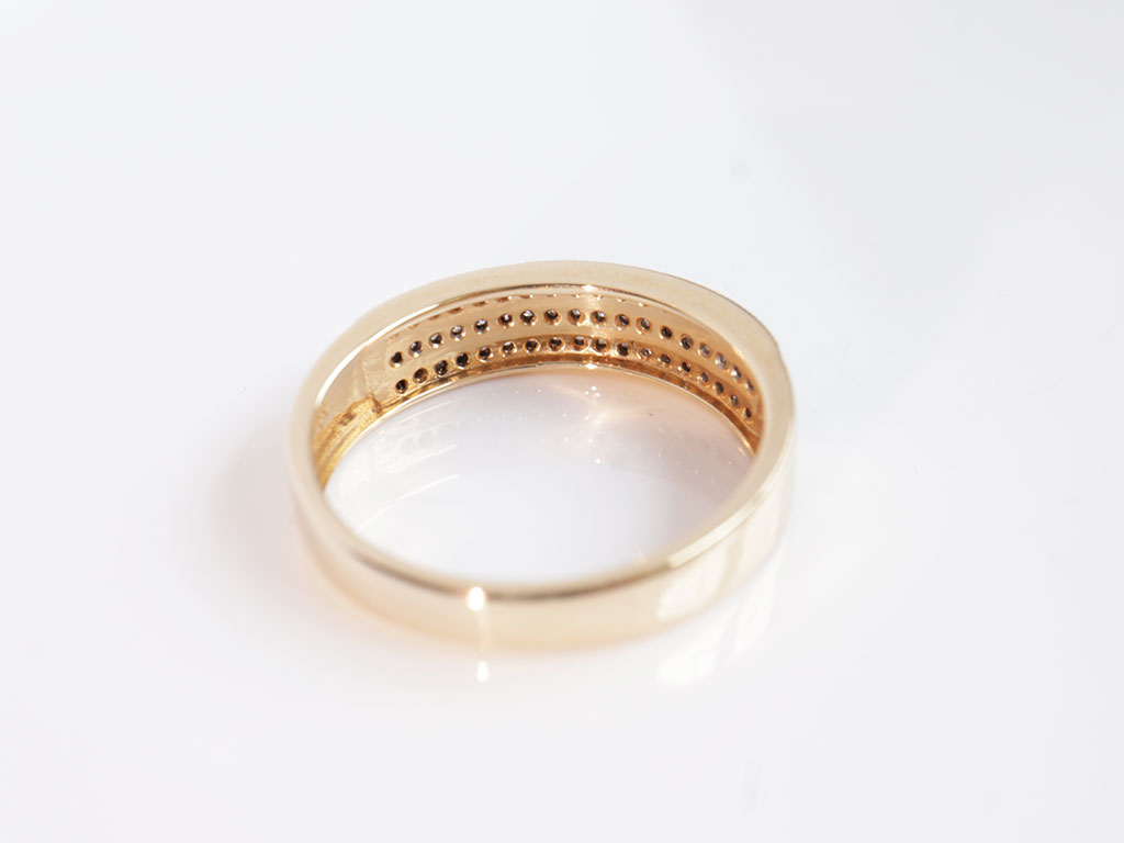 - 14 Karaat Gouden Ring Met Drie Rijen Diamanten