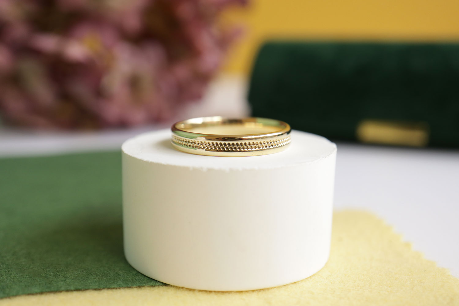Juist deze bewerking maakt de ring bijzonder: niet opvallend aanwezig, maar wel duidelijk anders dan een gladde band. Het ontwerp is tijdloos en veelzijdig, waardoor deze ring moeiteloos solo gedragen kan worden, maar ook perfect te combineren is met andere ringen in een stack.