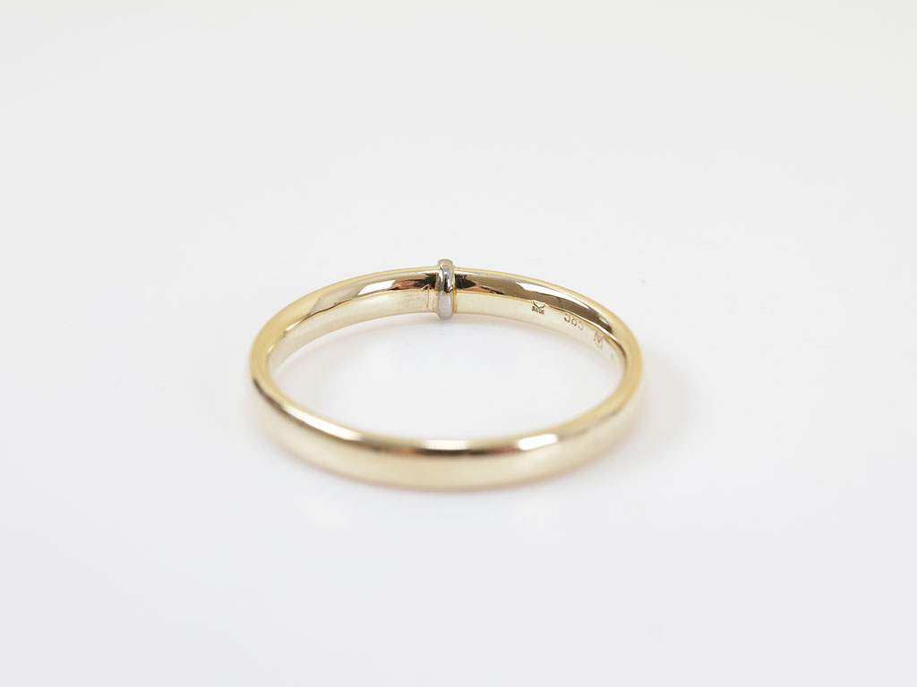 Deze gouden dames ring is gemaakt van 14 karaat geel-, wit- en roségoud. De ring gezet met twee briljant geslepen diamanten. Samen hebben zij een gewicht van 0.04 ct.