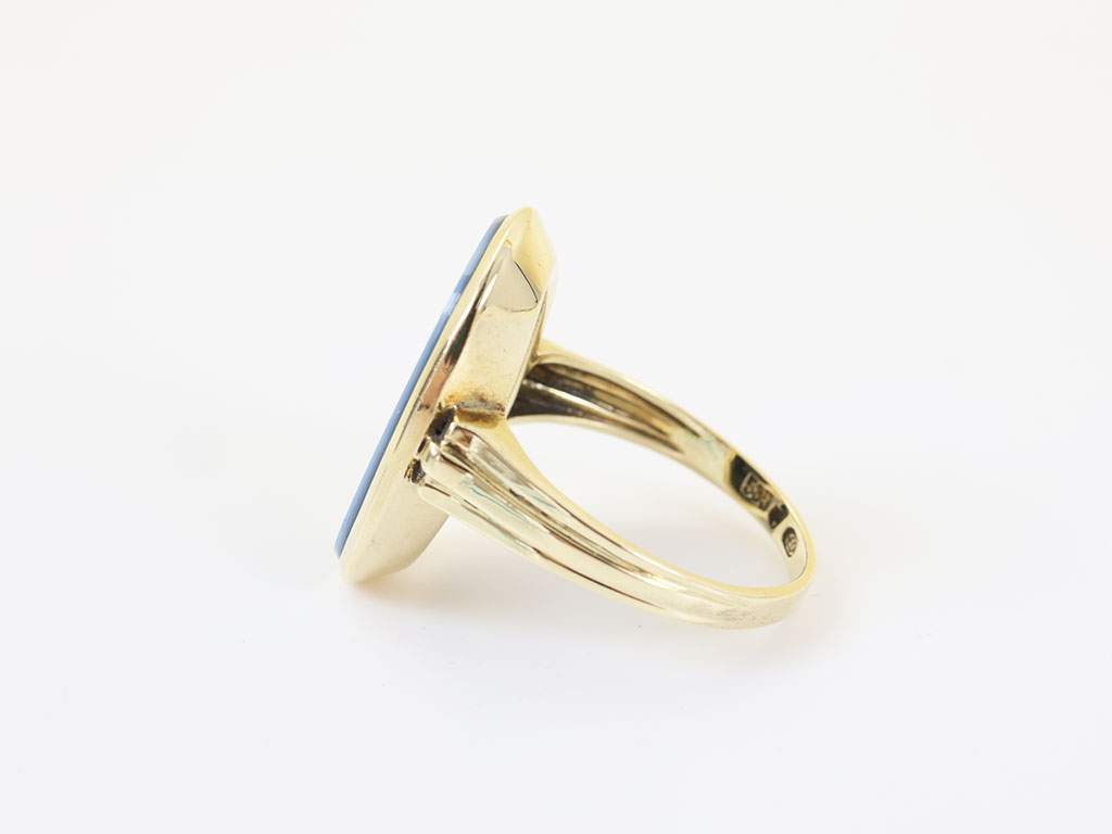 14 Karaat Gouden Zegelring Blauwe Lagensteen | Dames