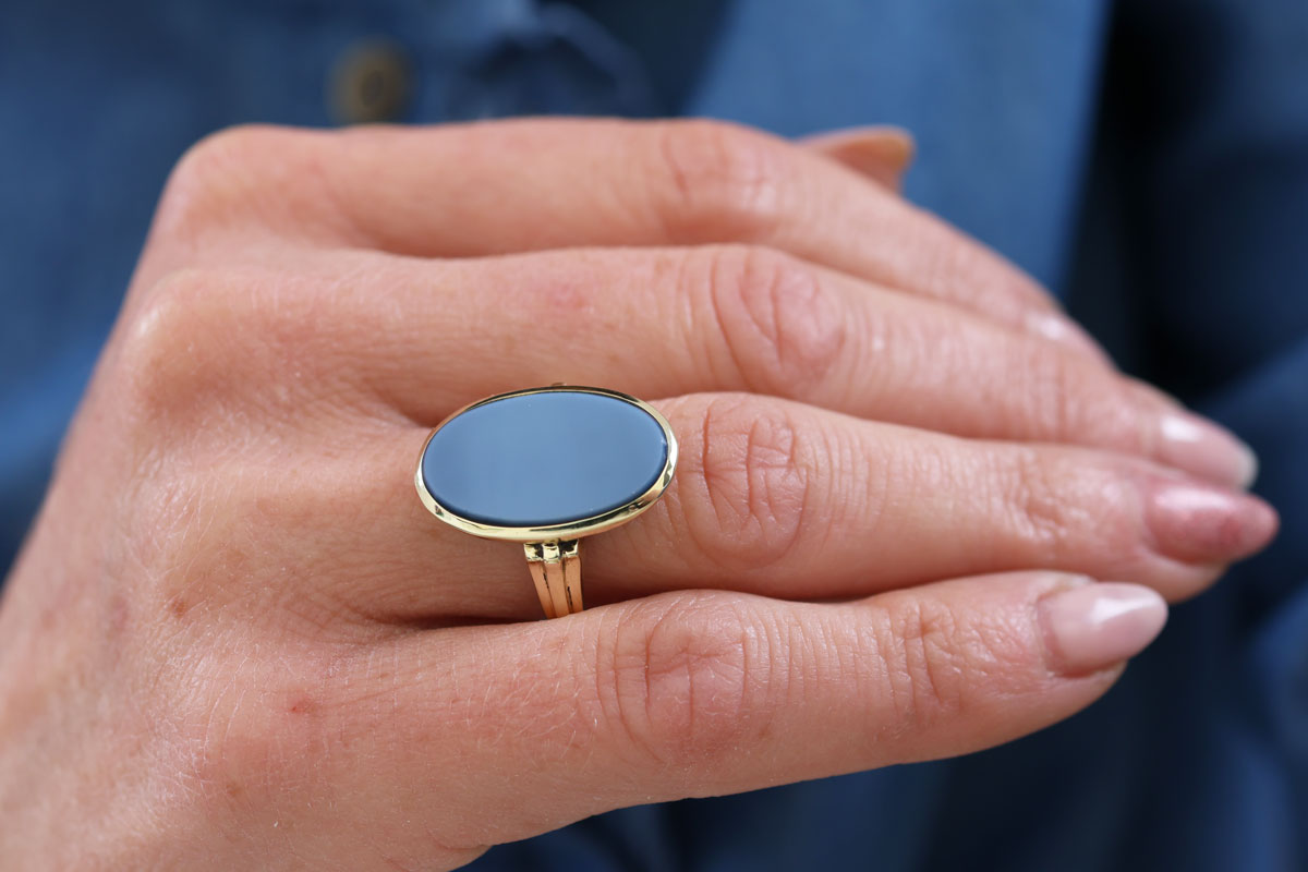 Dankzij het ovale ontwerp oogt deze ring verfijnd aan de hand en is hij perfect geschikt voor dames die een statement ring zoeken met klasse. De lagensteen geeft het sieraad extra diepte en een unieke uitstraling die je niet snel overal tegenkomt.
