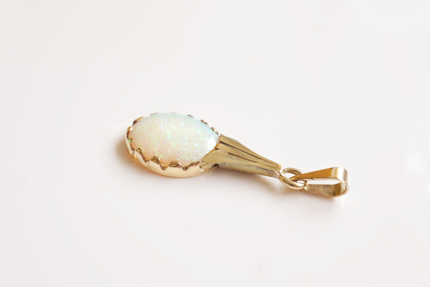 14 Karaat Vintage Gouden Hanger Met Opaal Edelsteen