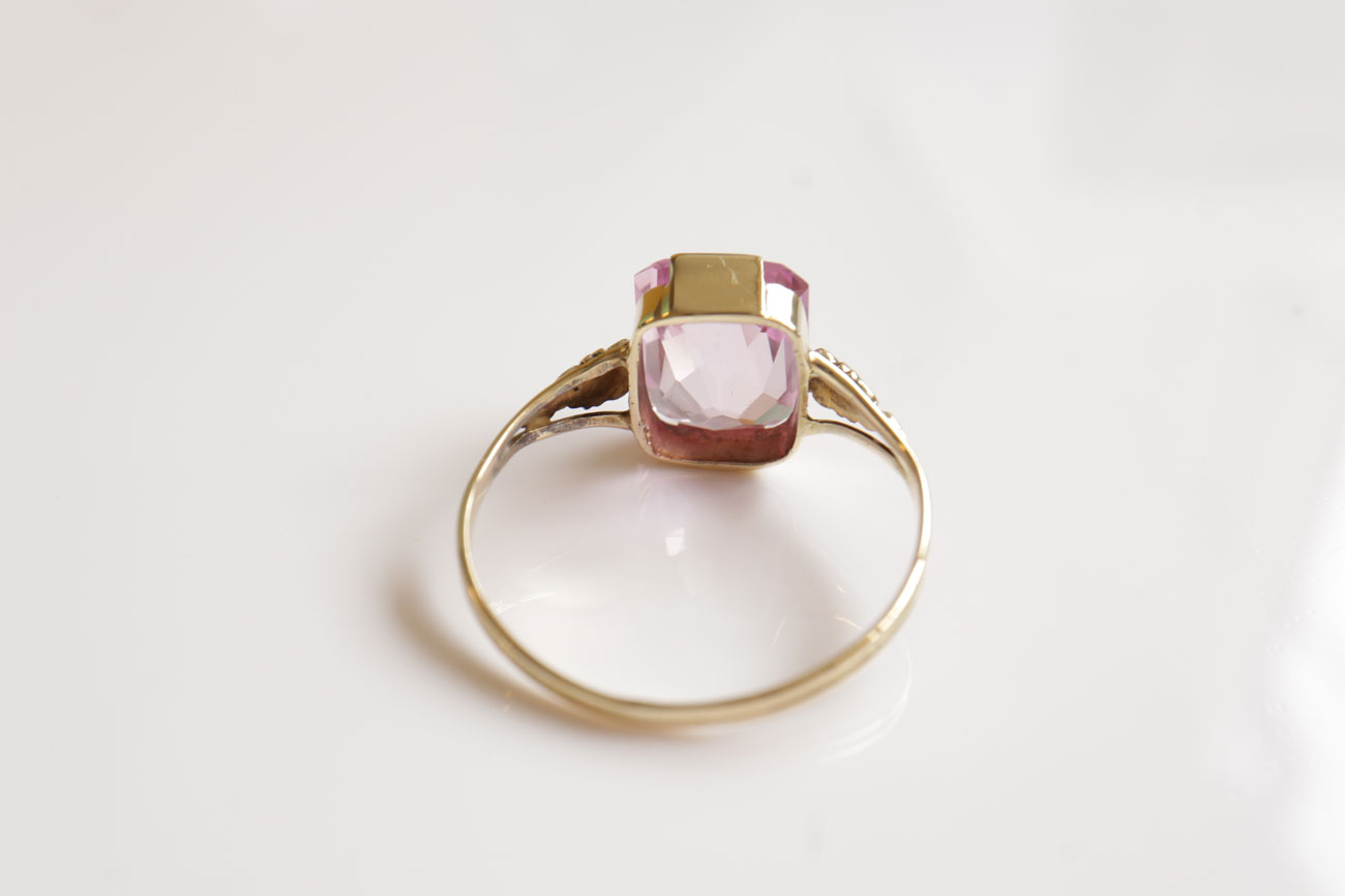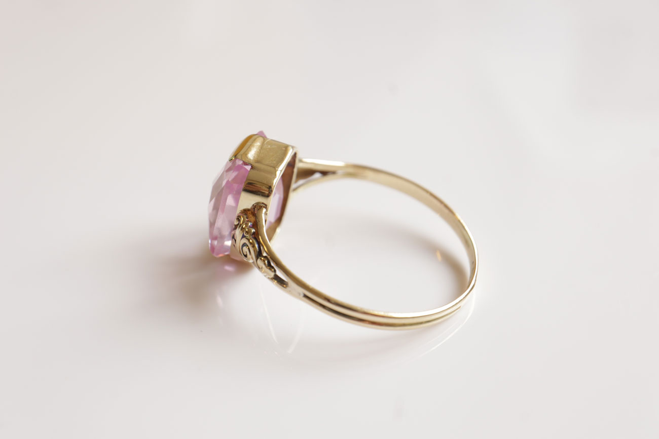 14 Karaat Vintage Gouden Ring Met Roze Toermalijn Edelsteen