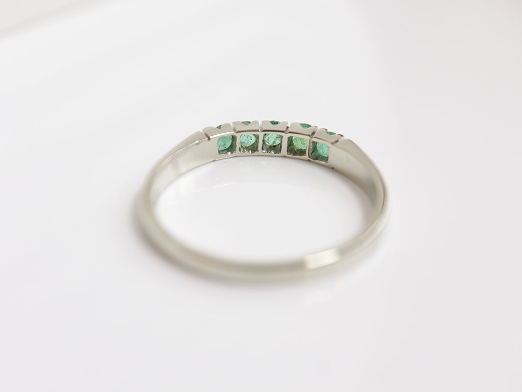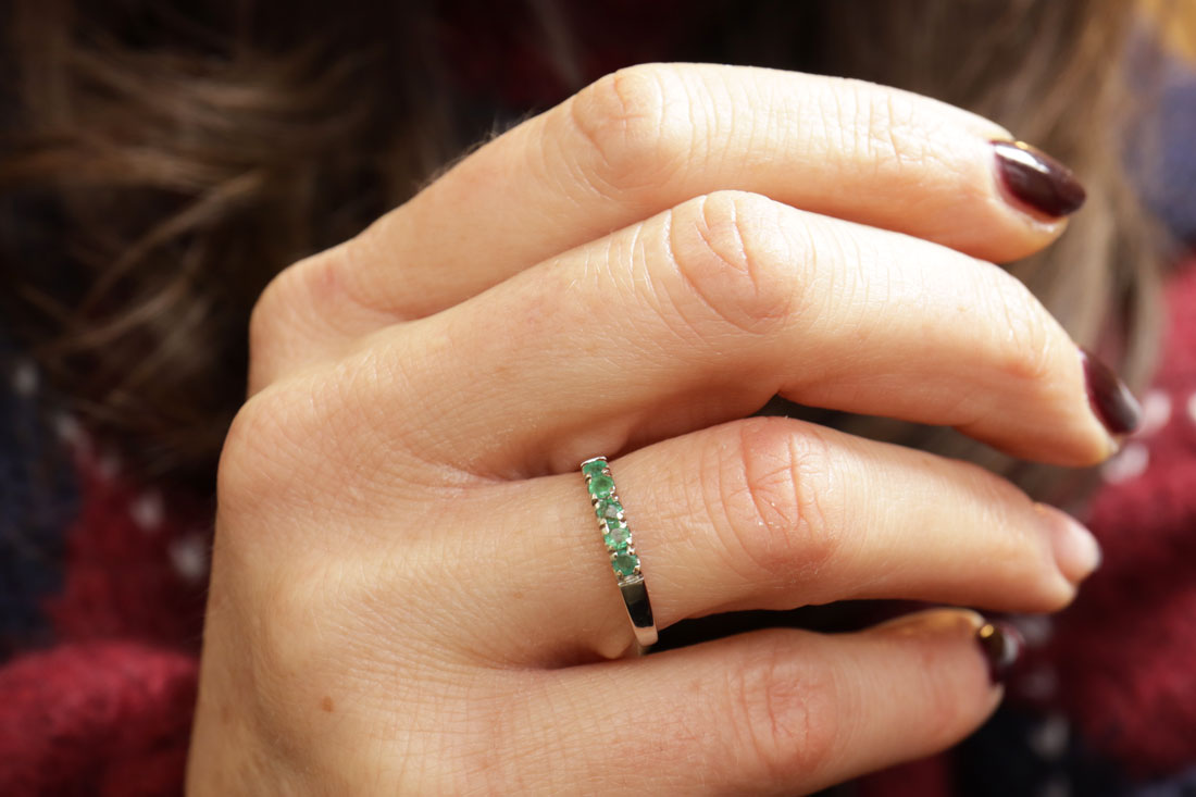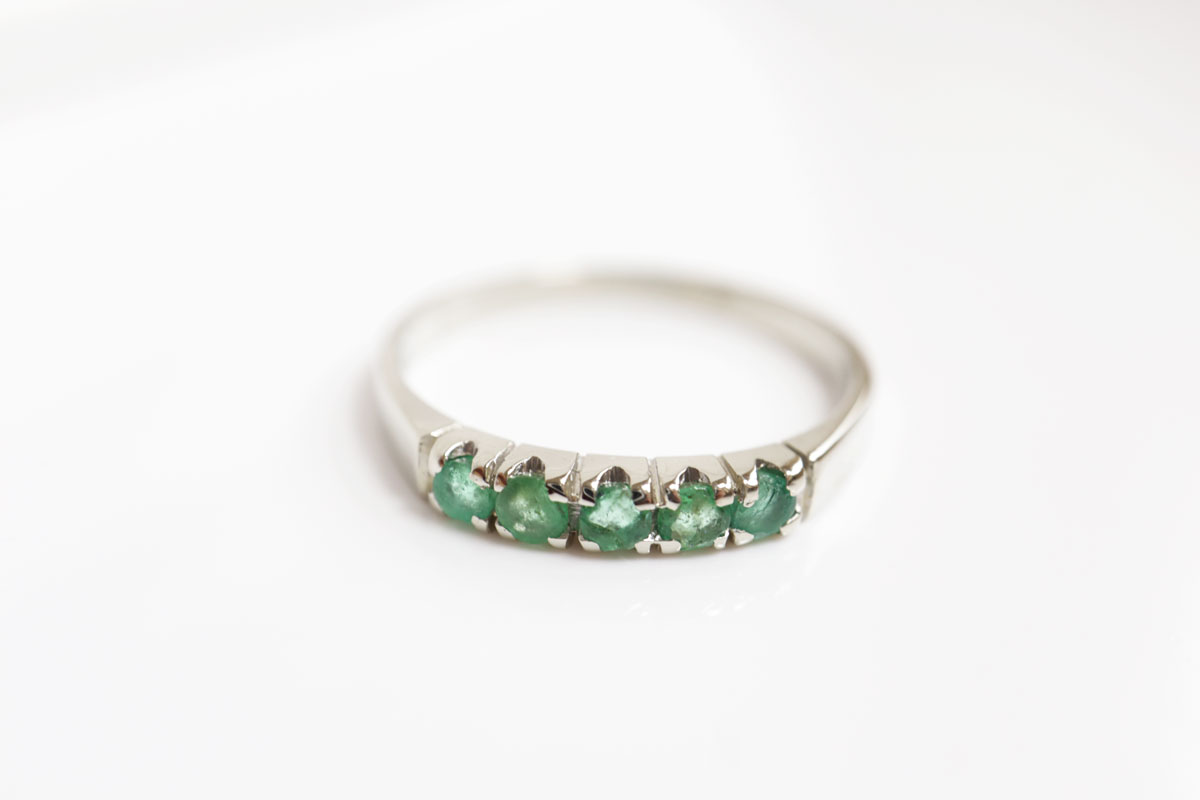 Z321-3221Kleurrijk, elegant en tijdloos! Deze gouden dames ring is gemaakt van 14 karaat witgoud. Het is een rijring die is gezet met 5 smaragd edelstenen. Een verfijnd model die heel goed alleen te dragen is of die je aanschuift bij je andere ringen.