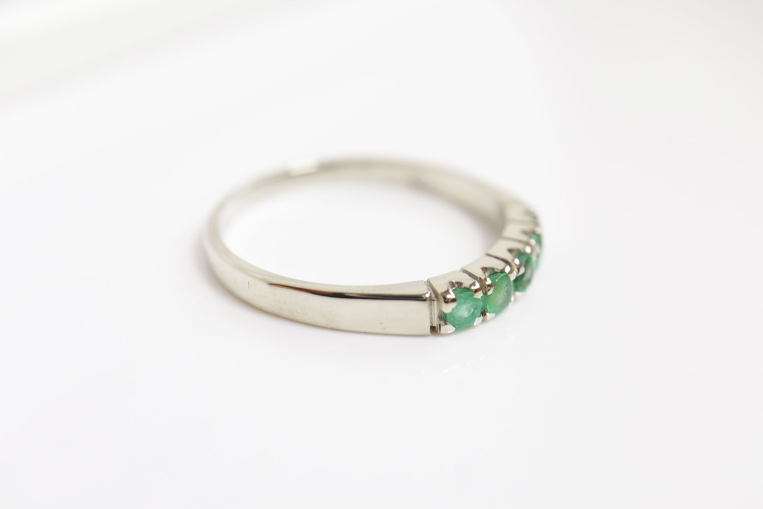 14 Karaat Witgouden Rijring Met Smaragd Edelstenen