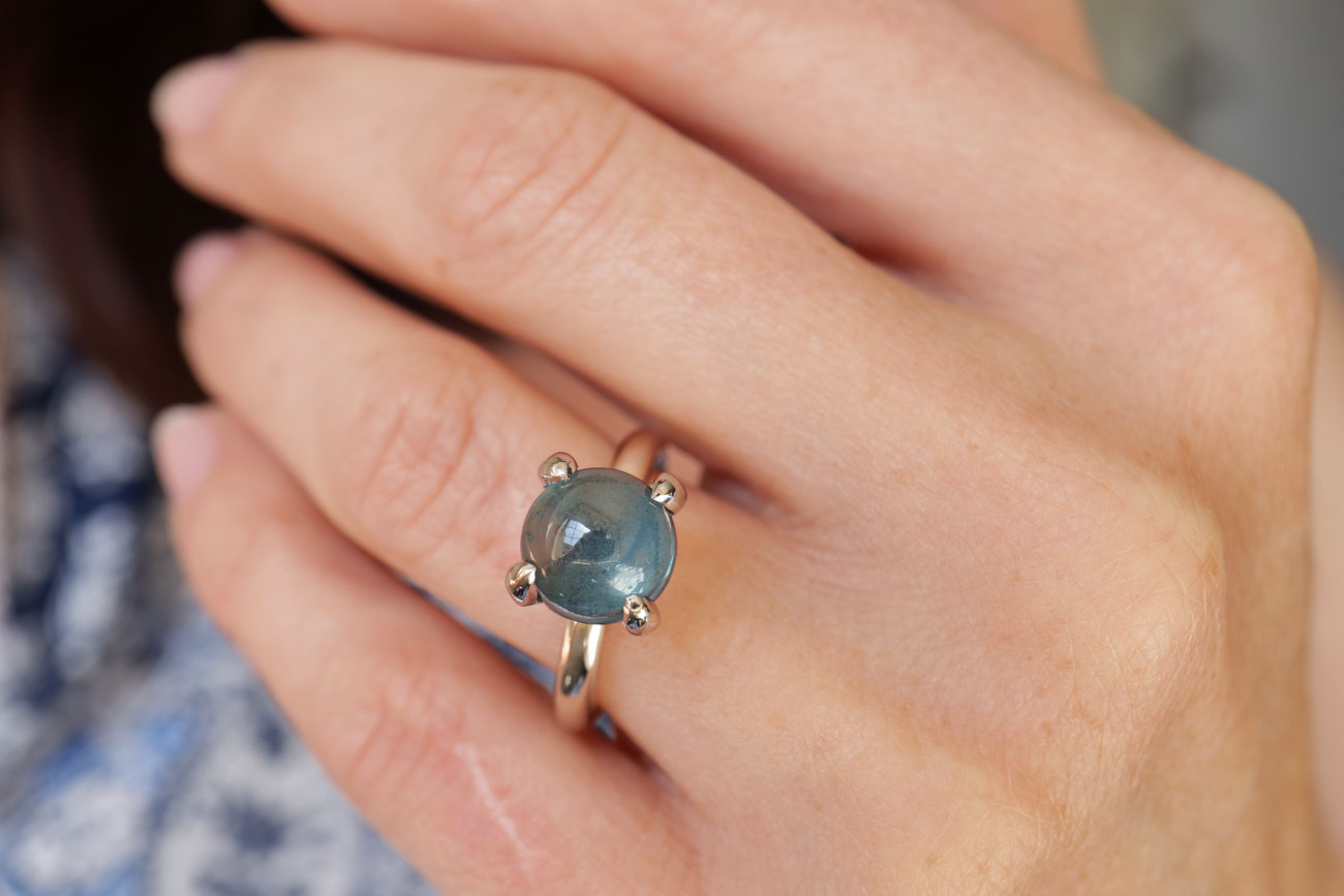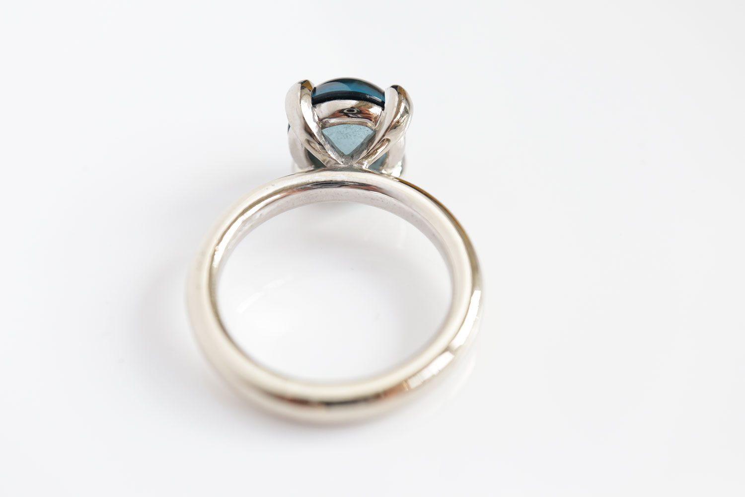 De blauwe topaas in deze 14 karaat witgouden ring, kleurt bij elke lichtinval een andere tint en helderheid blauw. Dat maakt deze simplistisch ontworpen ring al mooi en uniek op zichzelf.