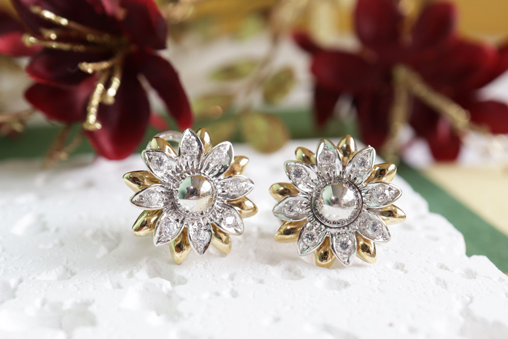 - 18 Karaat Gouden Schitterende Bloem Oorbellen