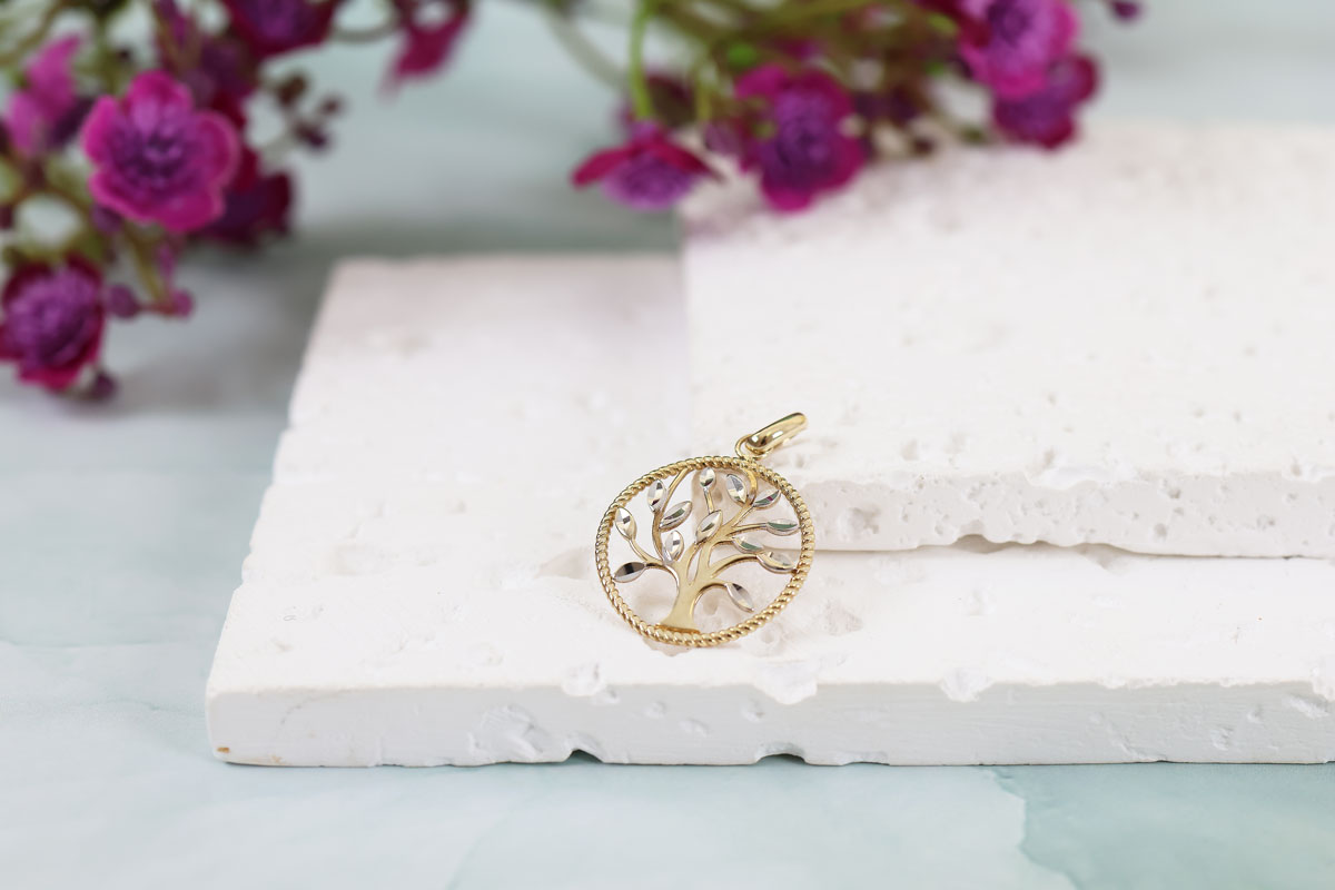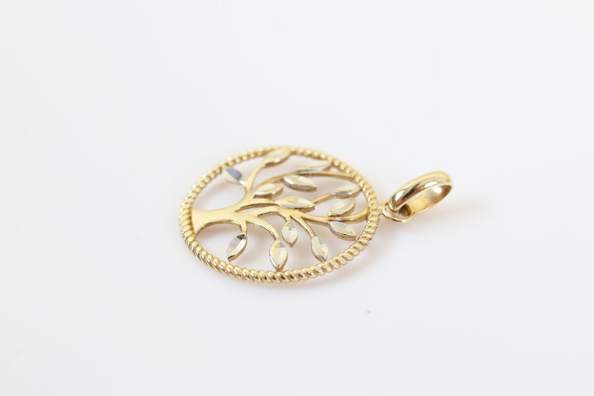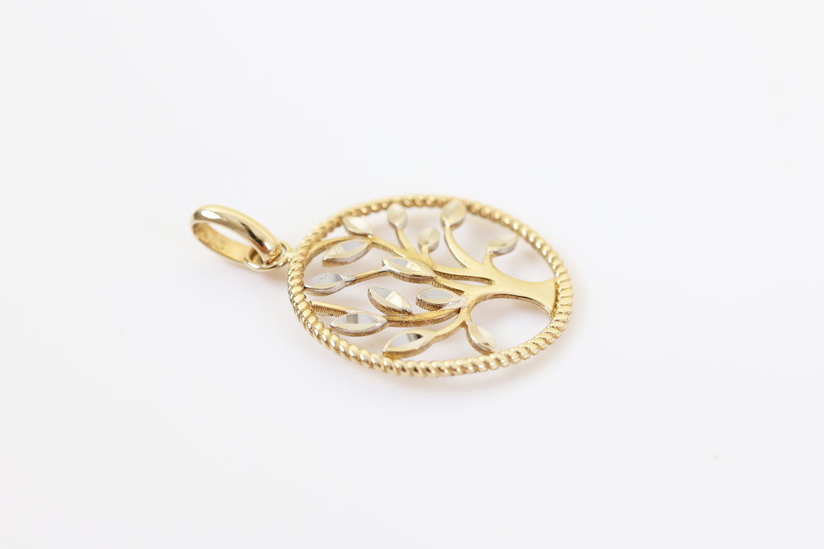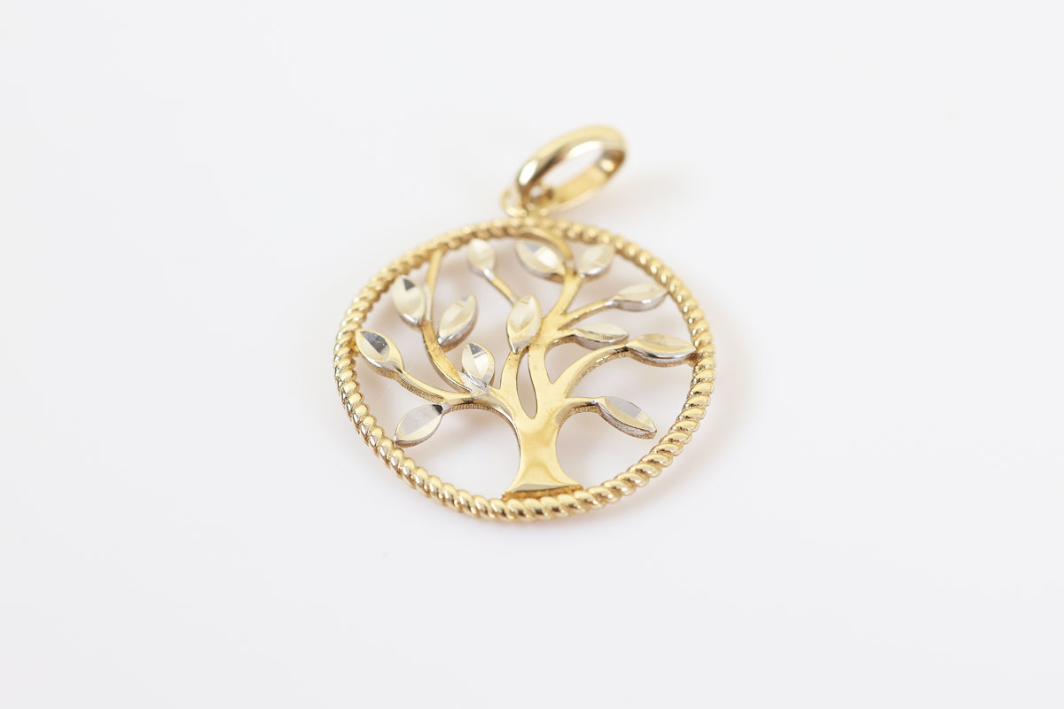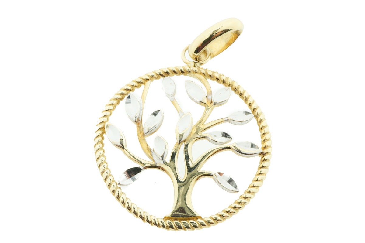 Deze 9 karaat levensboom hanger is prachtig sierlijk uitgewerkt. Tot in het kleinste detail en in twee kleuren: geel en wit. Het is een perfect sieraad om cadeau te geven.