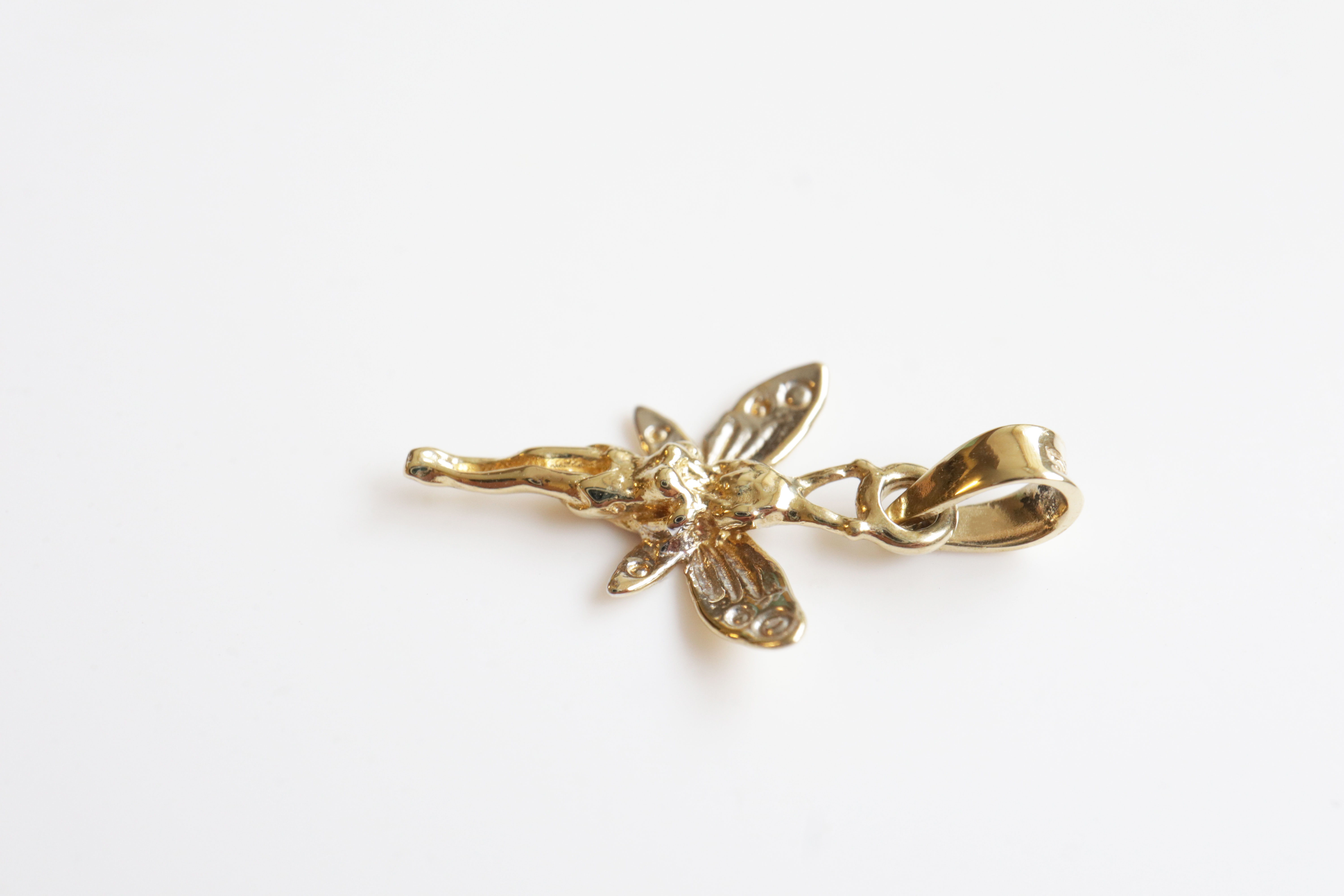 Z310-3112Deze gouden hanger in de vorm van een elfje is gemaakt van 14 karaat goud. Een ontzettend schattig sieraad, die natuurlijk perfect is om cadeau te geven, aan jezelf of een dierbare.