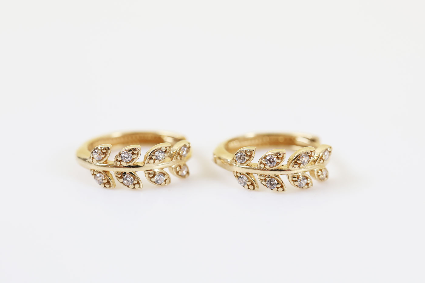 Deze 14 karaat gouden oorbellen met zirkonia hebben een verfijnd en vrouwelijk ontwerp. De oorbellen zijn vormgegeven in een sierlijk blaadjesmotief, waarbij kleine zirkonia steentjes subtiel zijn verwerkt in het ontwerp.