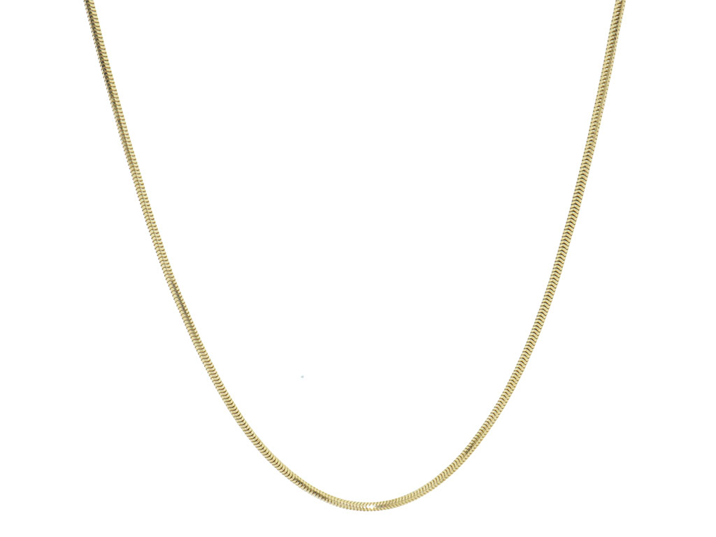 Een slangencollier staat altijd goed! Hij valt soepel om de hals en draagt comfortabel doordat hij rond afgewerkt is. Deze is gemaakt van 14 karaat goud en heeft een lengte van 45 cm. Hierdoor valt hij net over het sleutelbeen en is dus heel makkelijk te combineren met verschillende outfits.