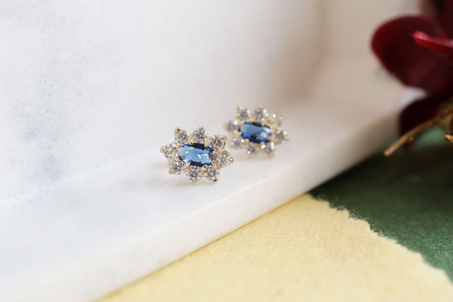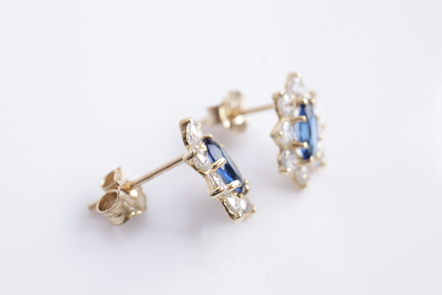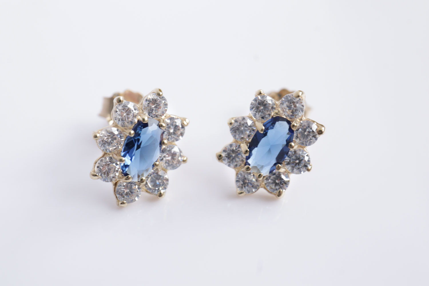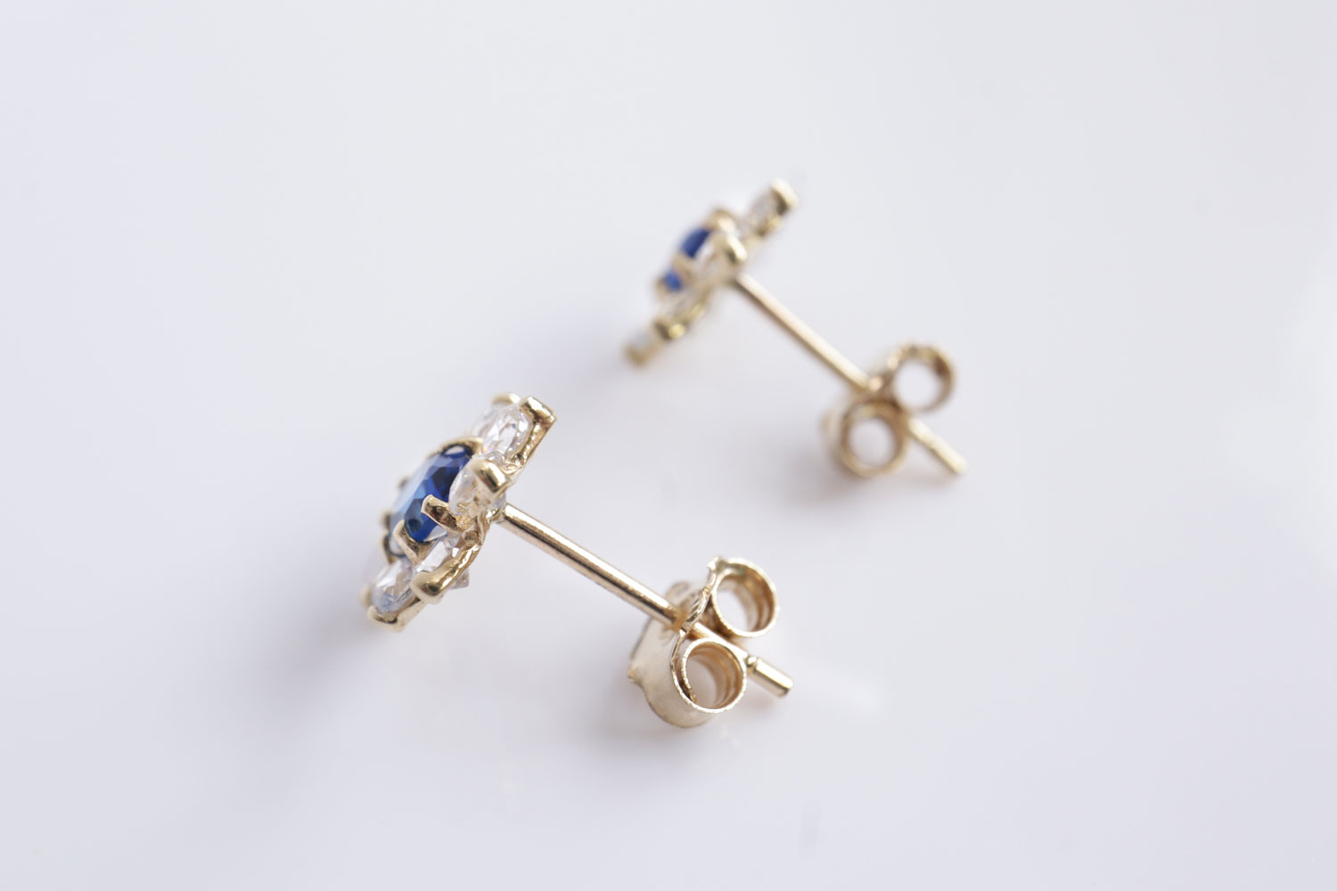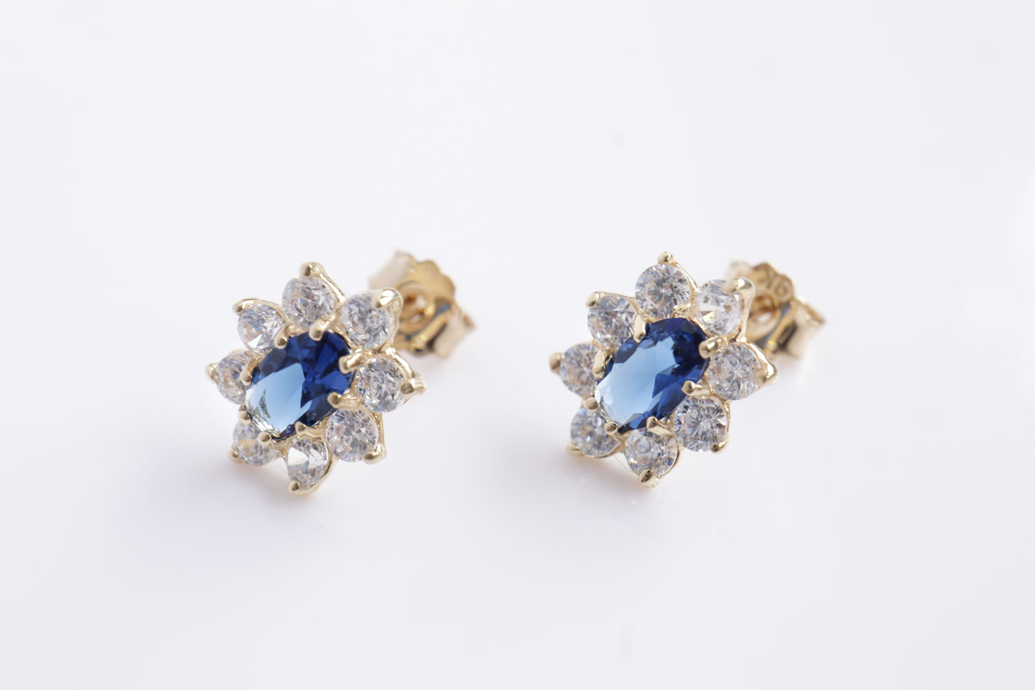 Lady Di Stijl Oorknopjes Met Saffier En Zirkonia | 9 Karaat