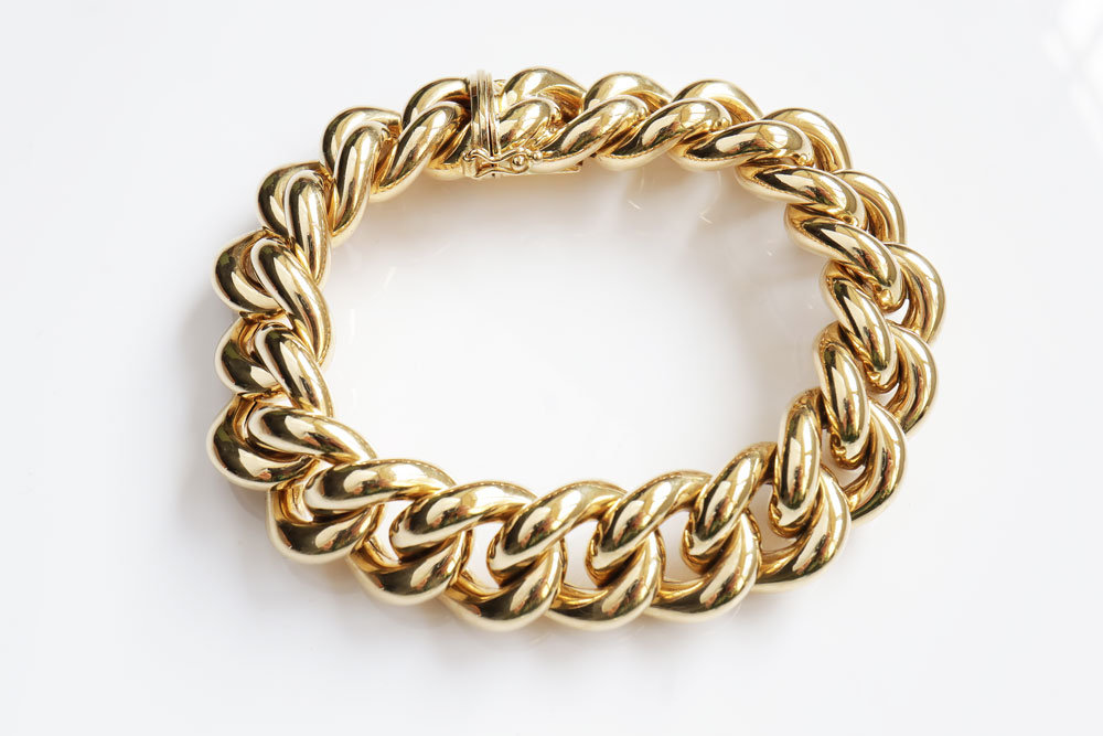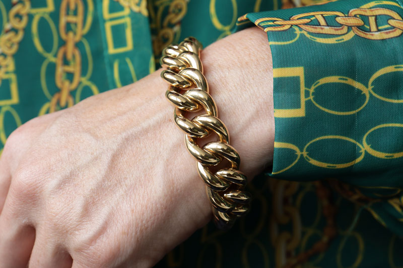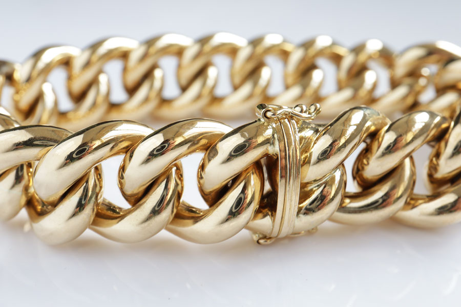 Deze 18 karaat gouden armband is behoorlijk indrukwekkend. Met zijn grove schakel straalt het kracht uit maar tevens ook luxe en vrouwelijkheid. Deze armband weegt maar liefst 66,79 gram en is voorzien van een stevige baksluiting met veiligheidsclips. Een echte eyecatcher!
