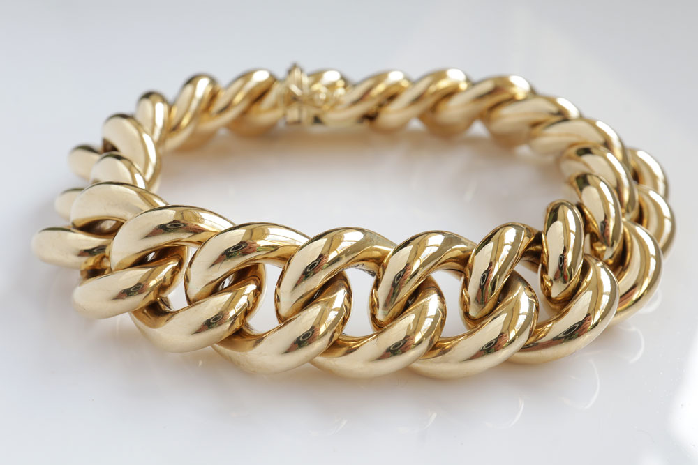 Deze gouden armband is gemaakt van 14 karaat goud.