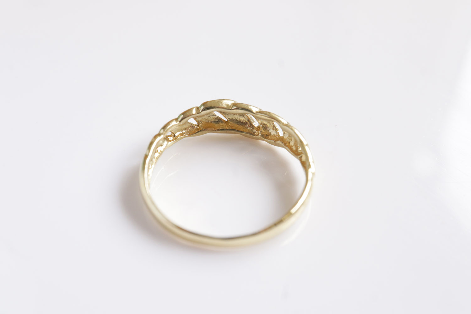De zijkant van de ring heeft een schakelmotief zoals wij die kennen van Rolex.