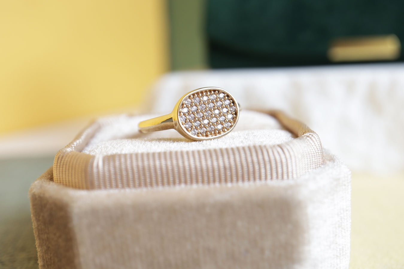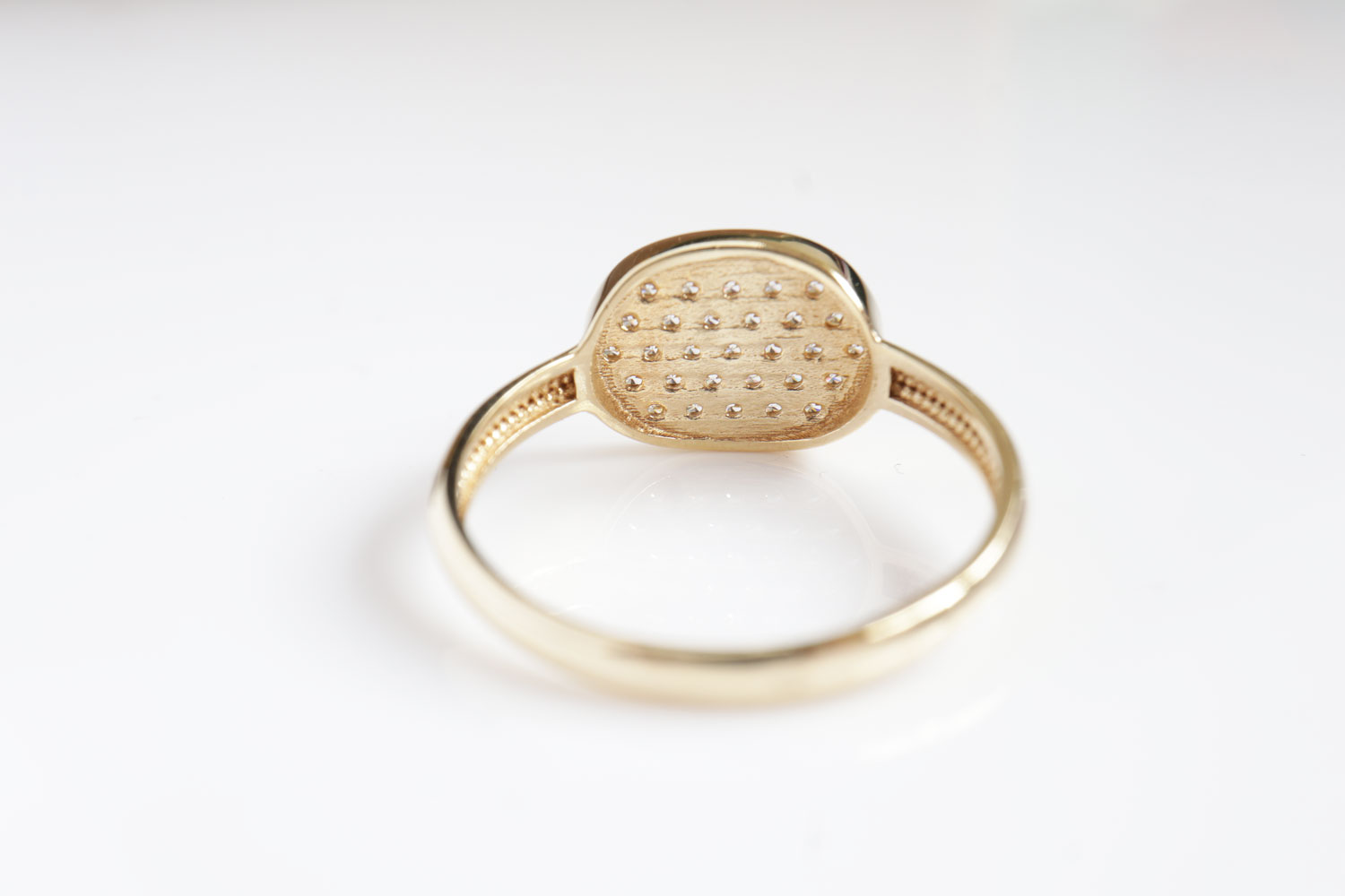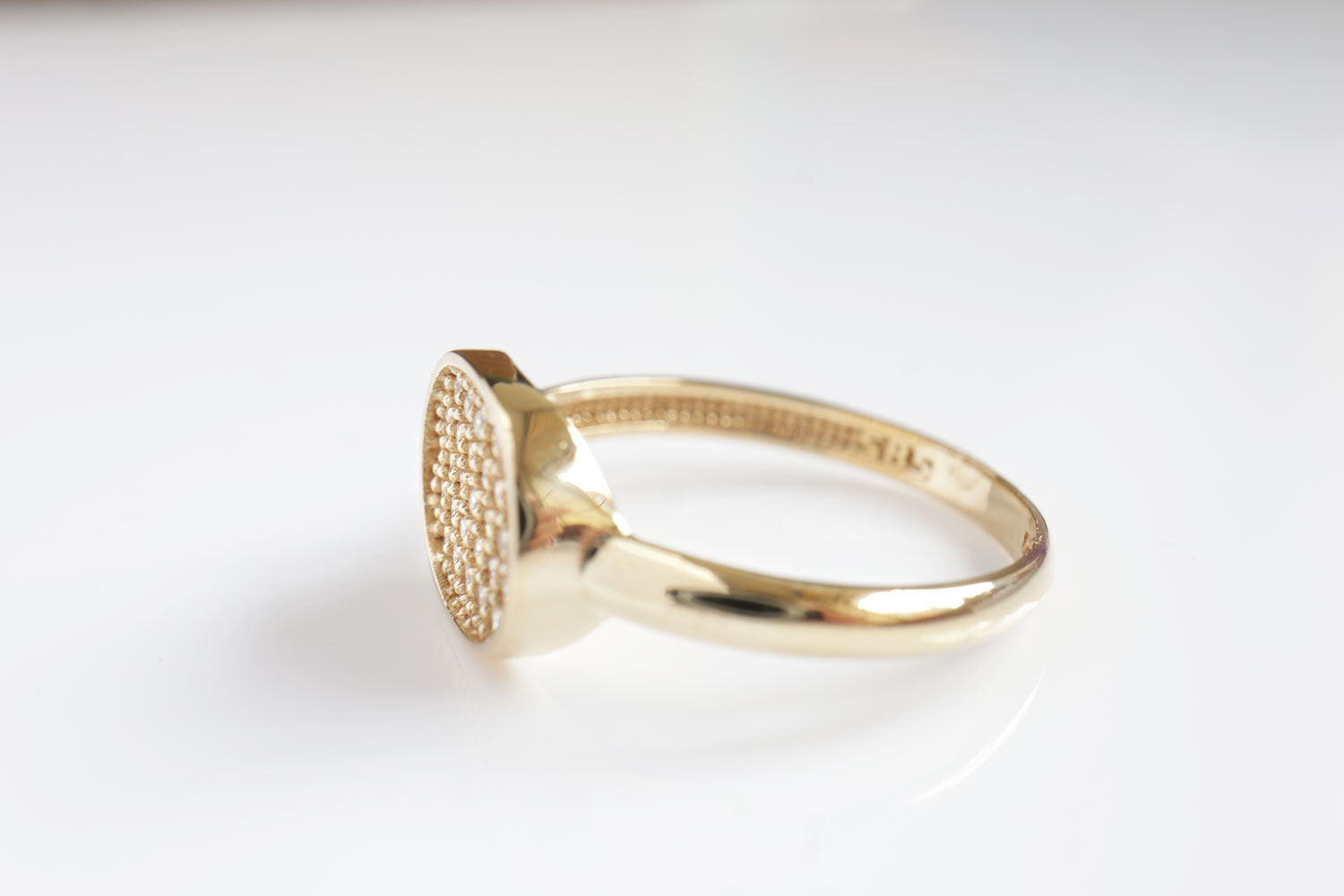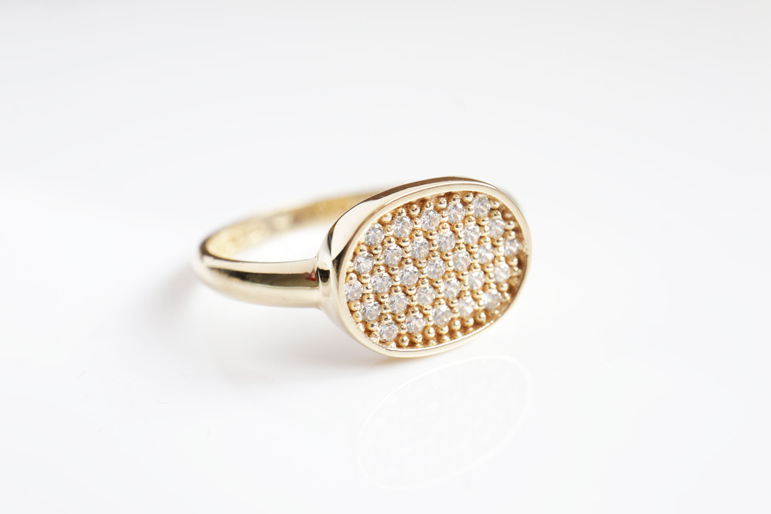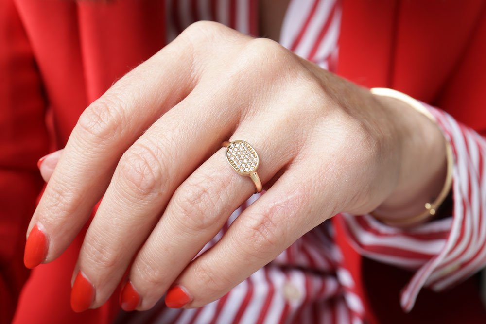 Door de ovale vorm, de lage kast en de afgeronde band, draagt deze ring heel comfortabel.
