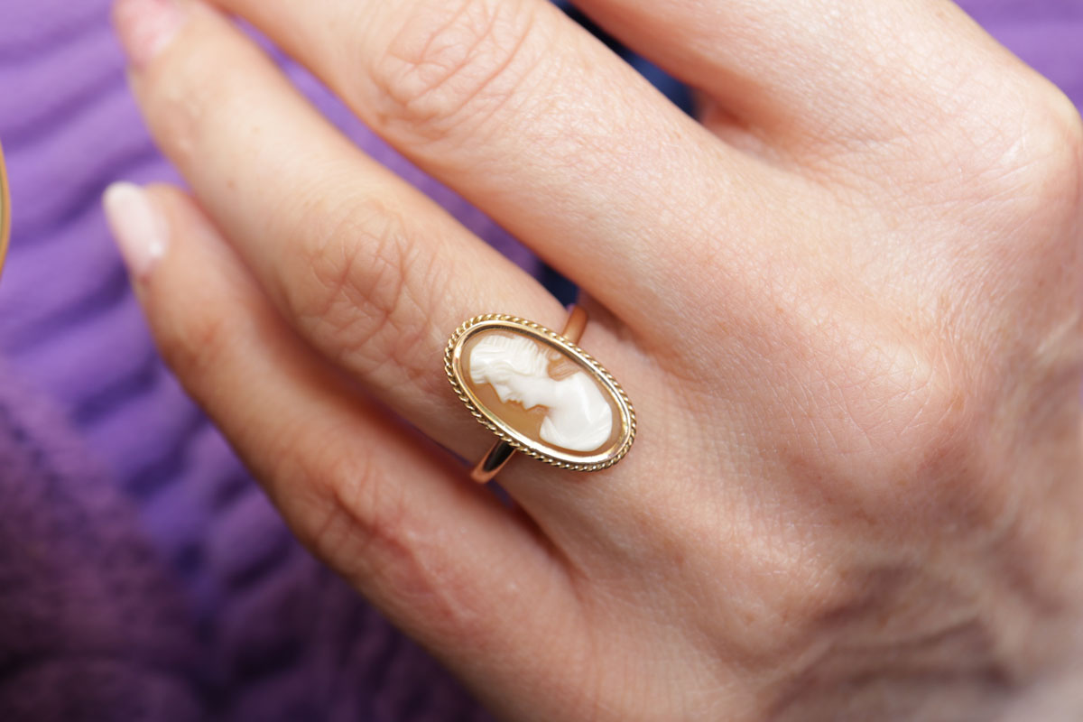 - Noé | Vintage 14 Karaat Gouden Ovale Camee Ring