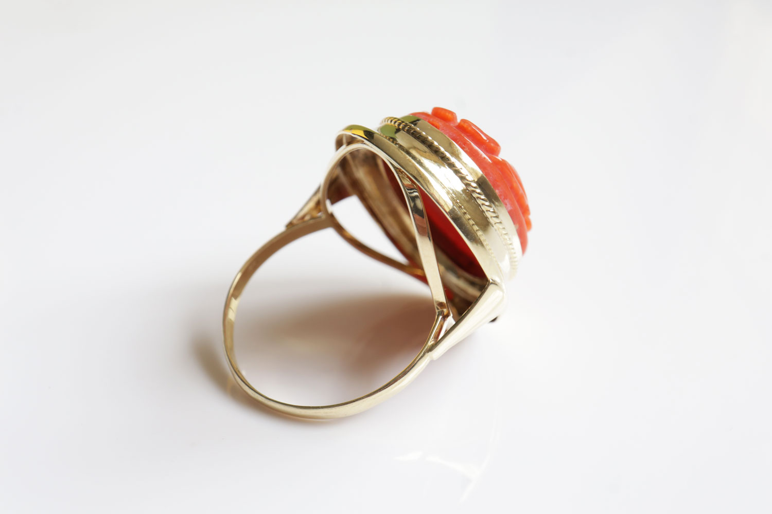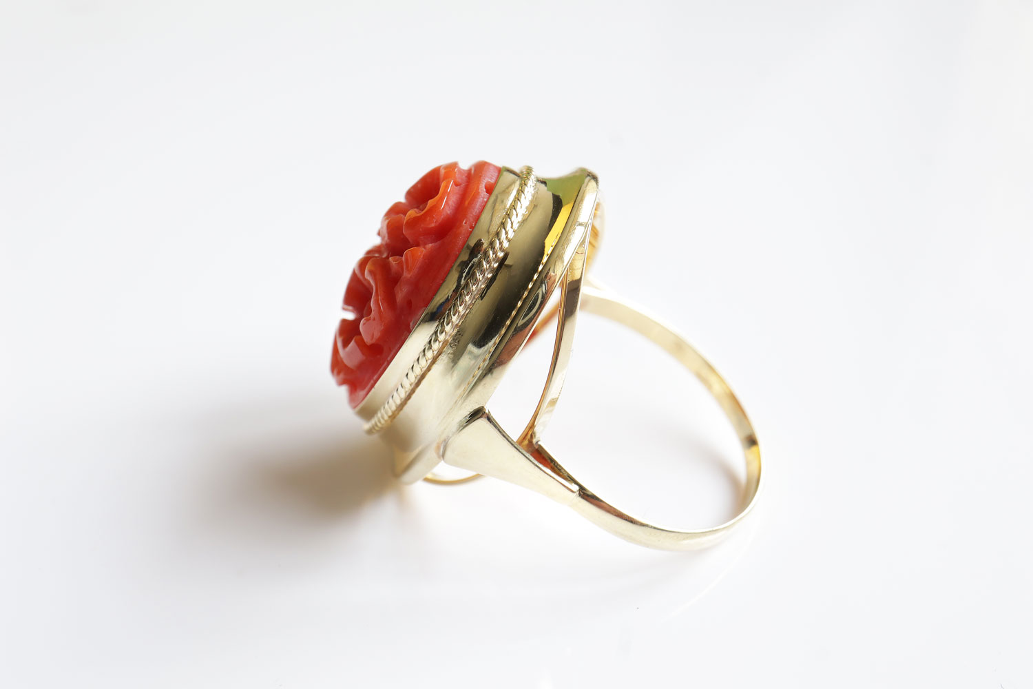 Red Coral Flower | 14 Karaat Gouden Vintage Ring