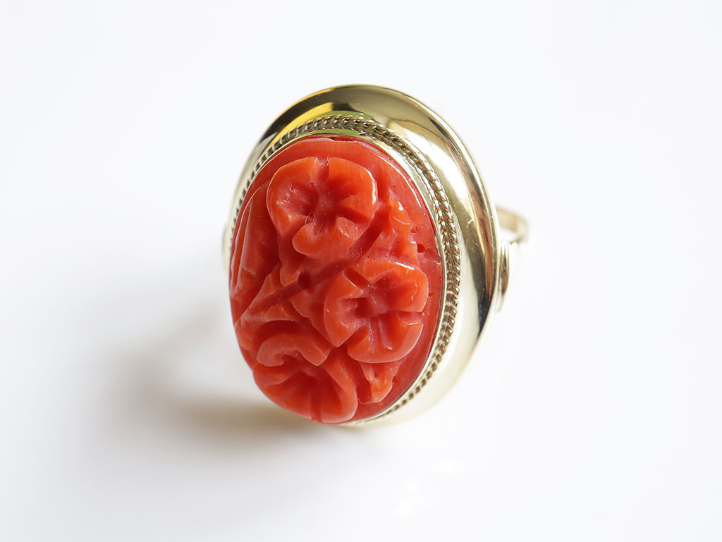 - Red Coral Flower | 14 Karaat Gouden Vintage Ring