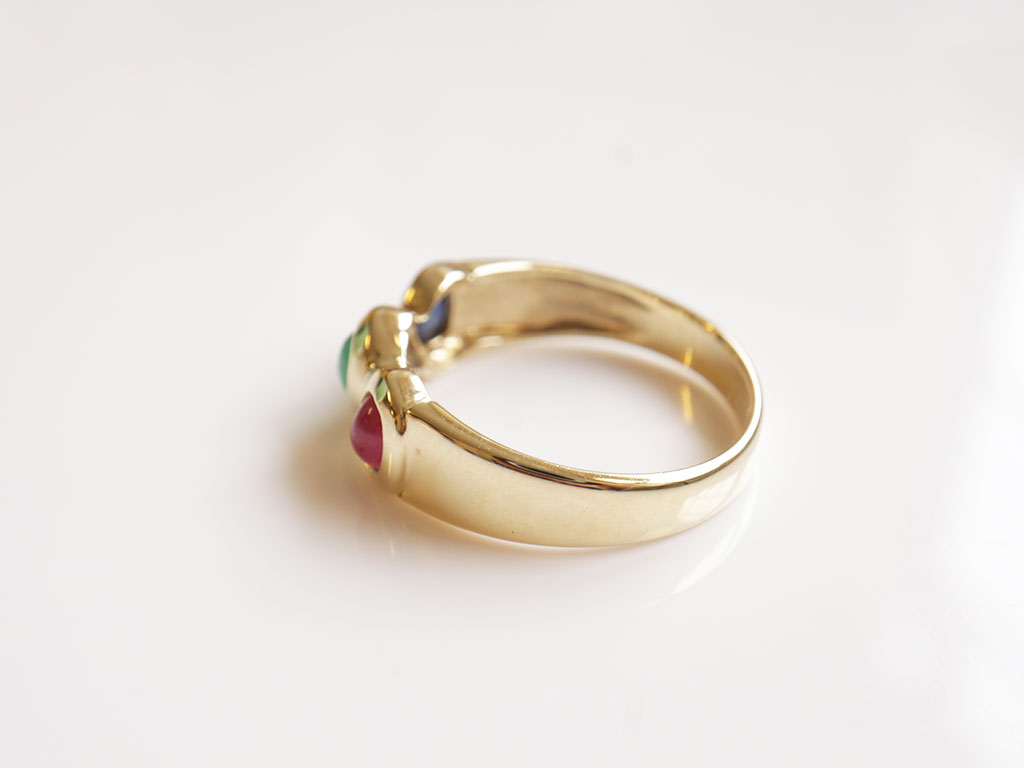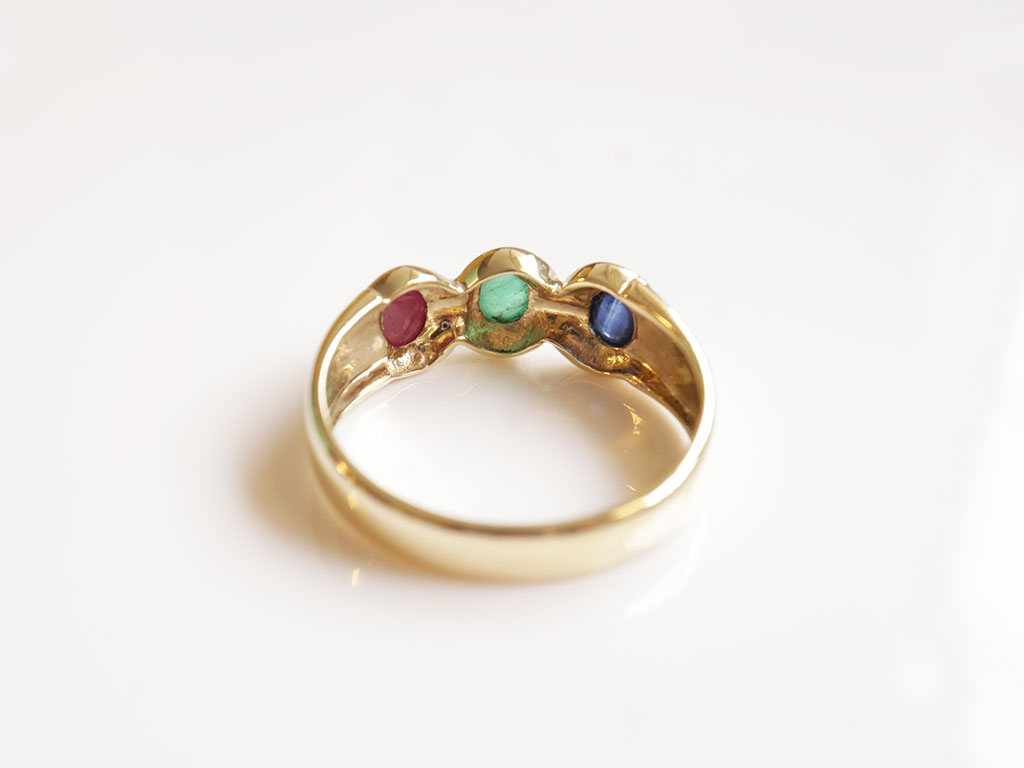 Z320-3218Deze gouden ring is een perfecte trilogie, waarbij de kleuren er vanaf spatten. De ring is namelijk gezet met 3 klassieke edelstenen: smaragd, robijn en saffier. Deze matchen heel mooi bij elkaar. De golvende bewerking van de ring, geeft hem een speels en vrouwelijk effect zonder te verliezen aan elegantie.