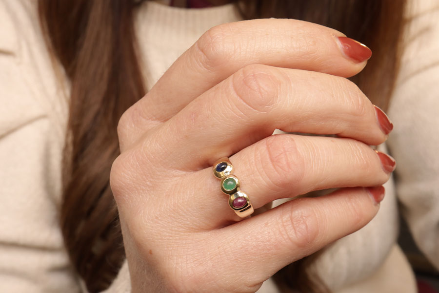 De perfecte trilogie ring vinden we in deze beauty! De kleuren matchen geweldig met elkaar.