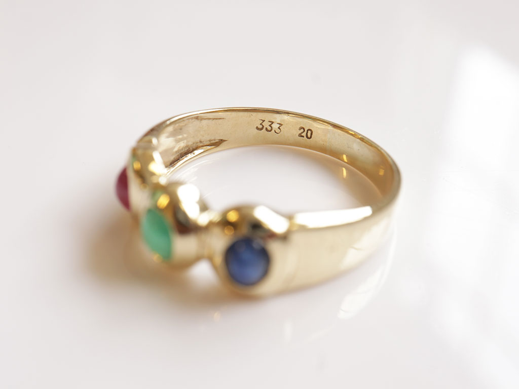 - Trilogie Ring | 8 Karaat Ring Met Drie Edelstenen