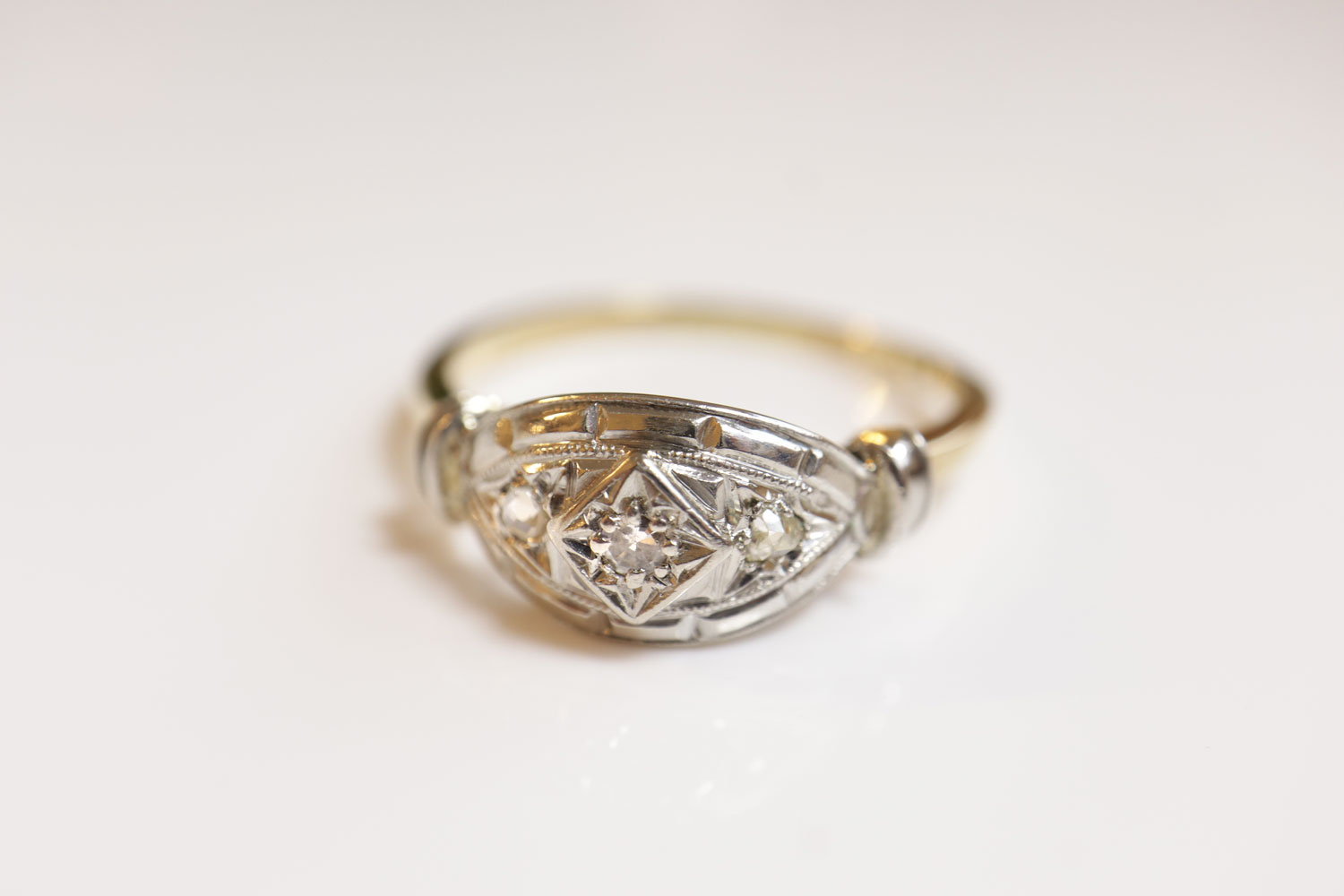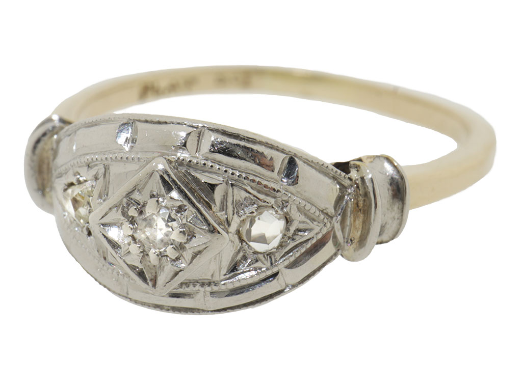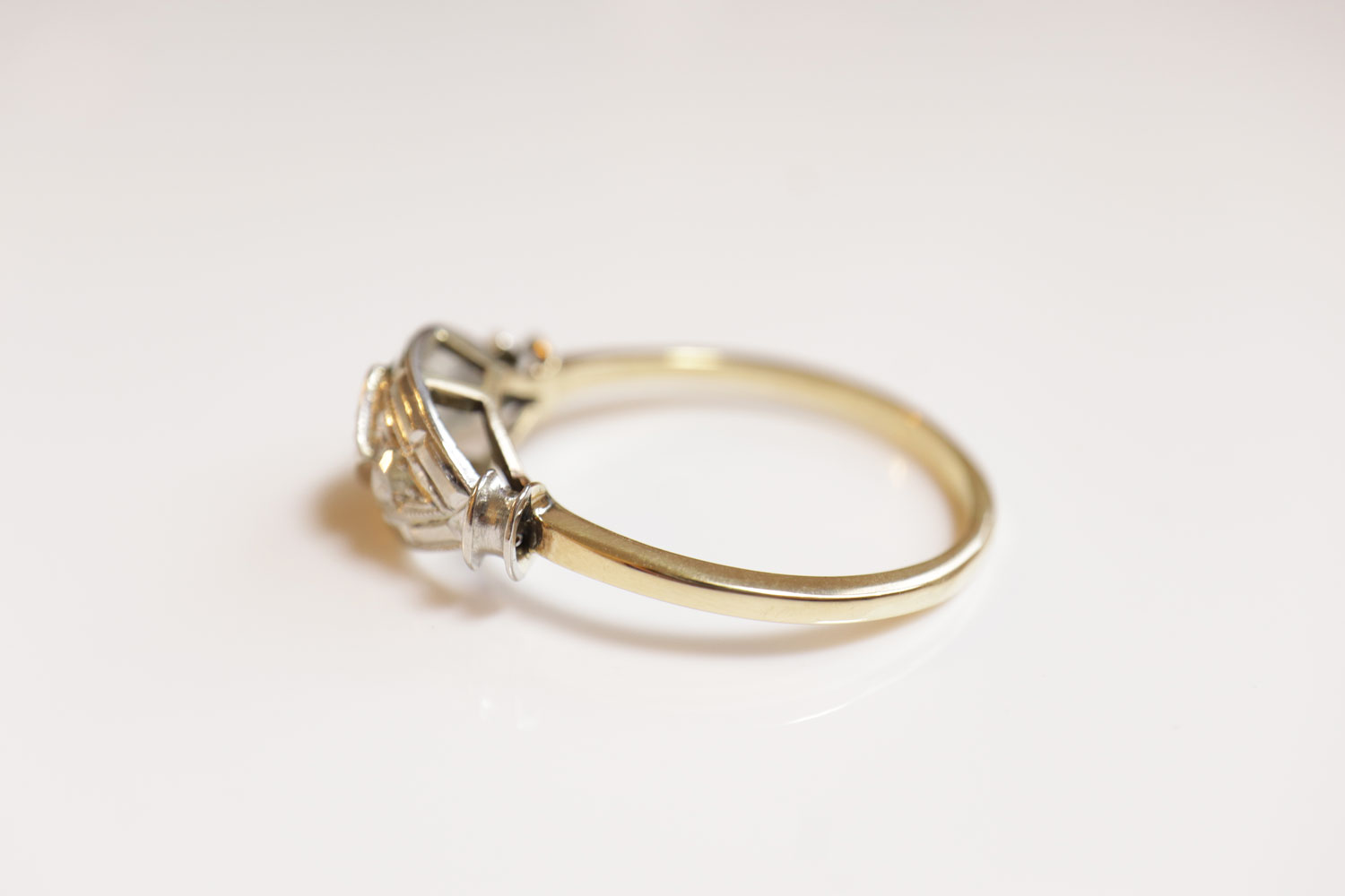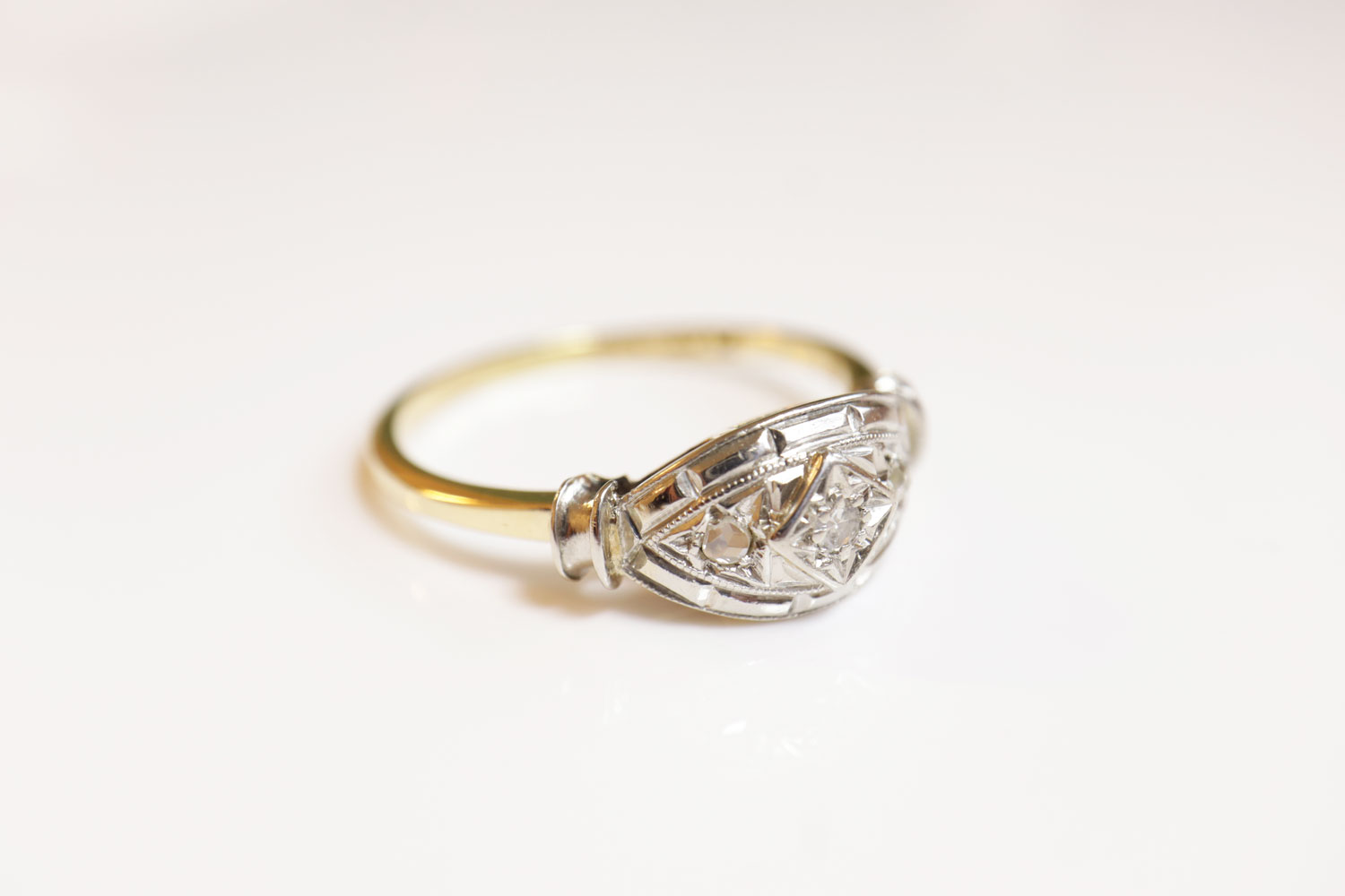 Vintage 14 Karaat Gouden Art Deco Ring Met Platina En Diamanten