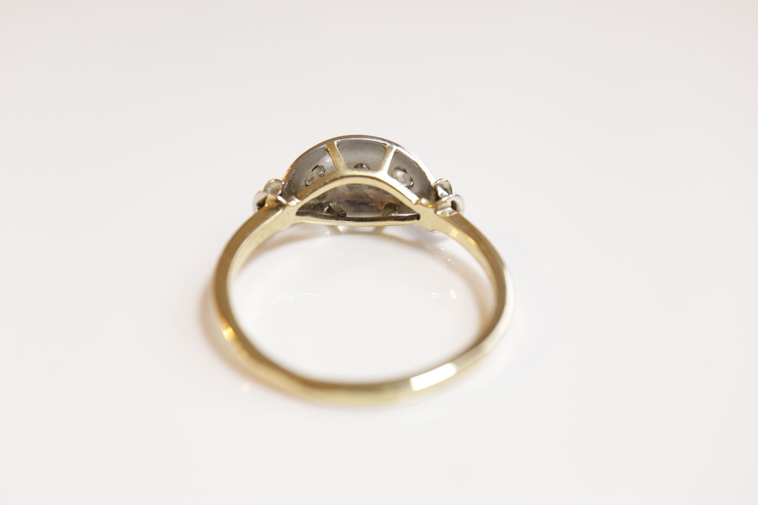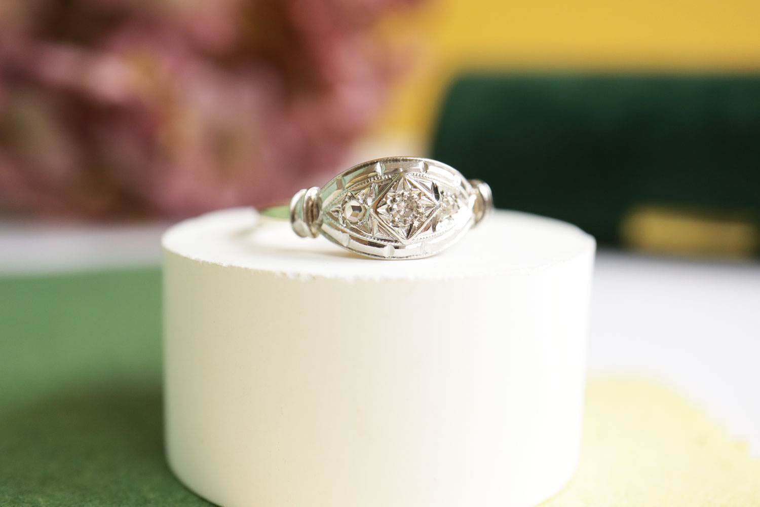- Vintage 14 Karaat Gouden Art Deco Ring Met Platina En Diamanten